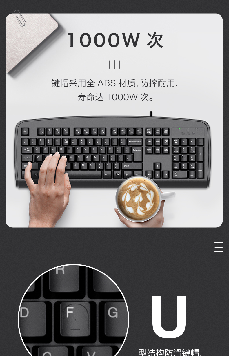 双飞燕(A4TECH) KB-8PS2 键盘 有线键盘 办公键盘 防溅水 PS2接口台式机专用 黑色