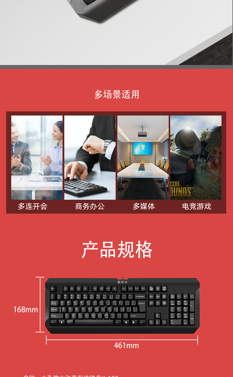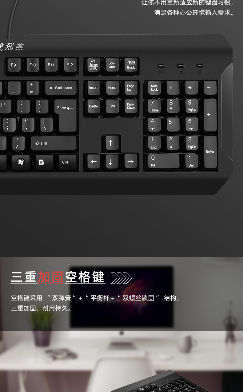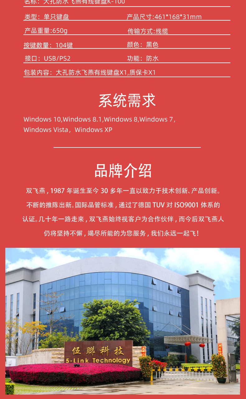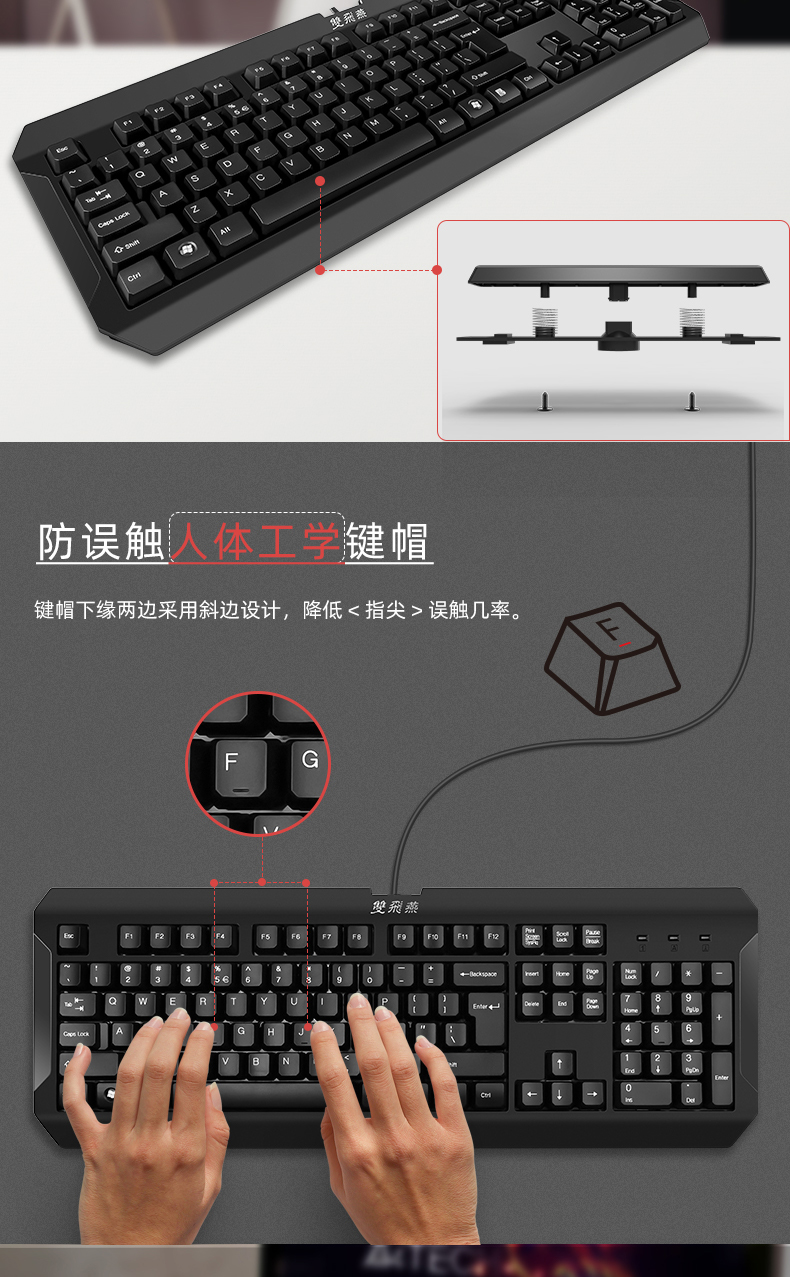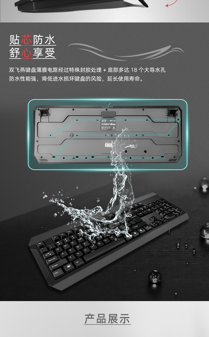 商品名称:双飞燕(A4TECH)K-100 键盘 有线键盘 办公键盘USB防水键盘 104键 黑色