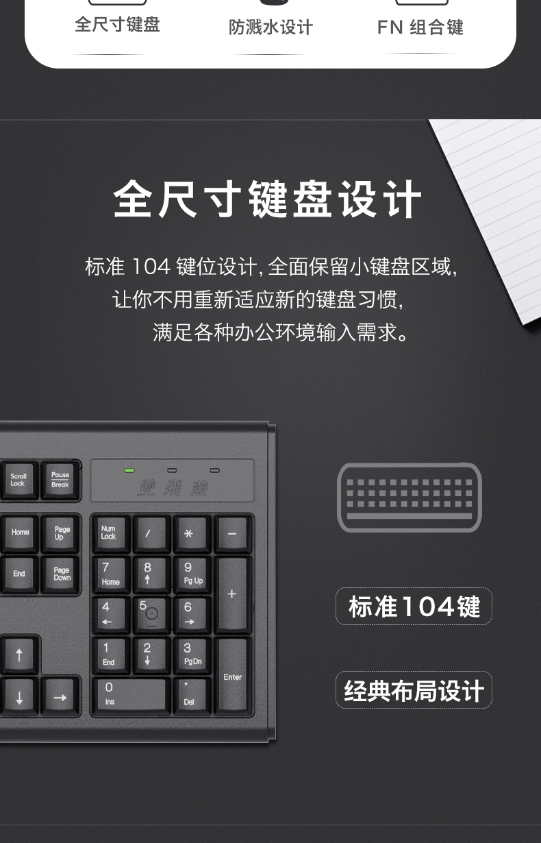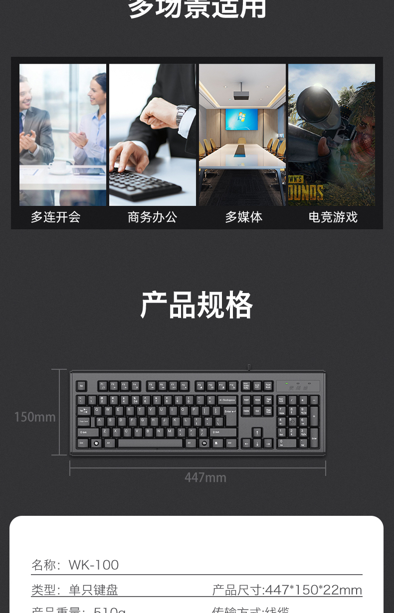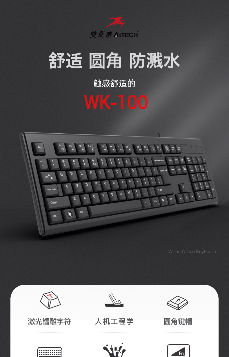 - 商品名称:双飞燕(A4TECH) WK-100 键盘 有线键盘 办公键盘USB笔记本台式机通用键盘 104键 黑色