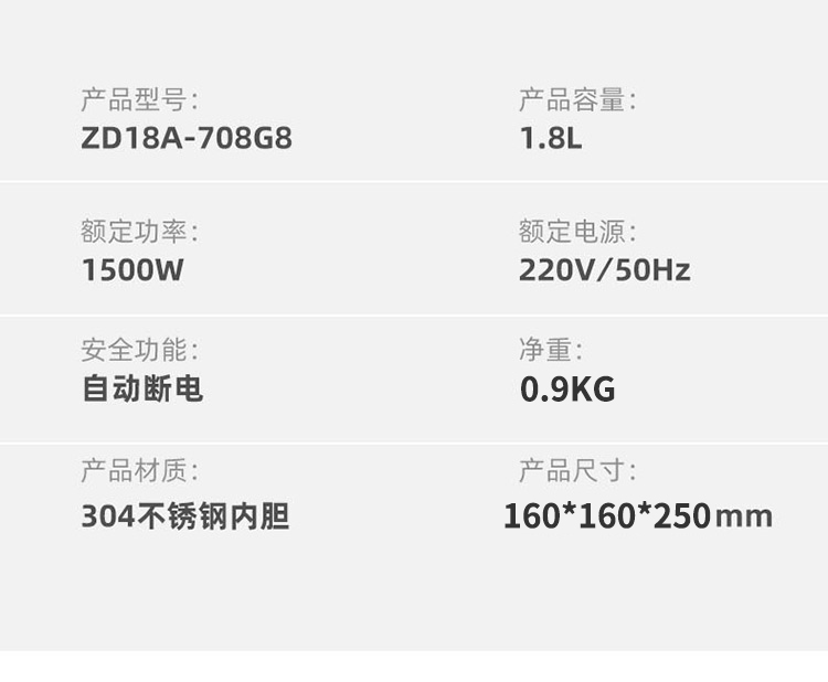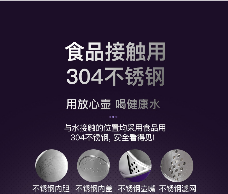 认证型号:ZD18A-708G8 1.8L电水壶 紫色