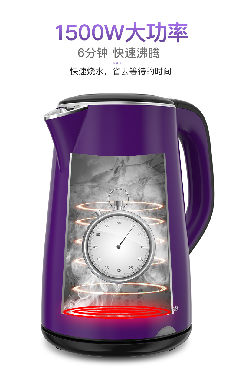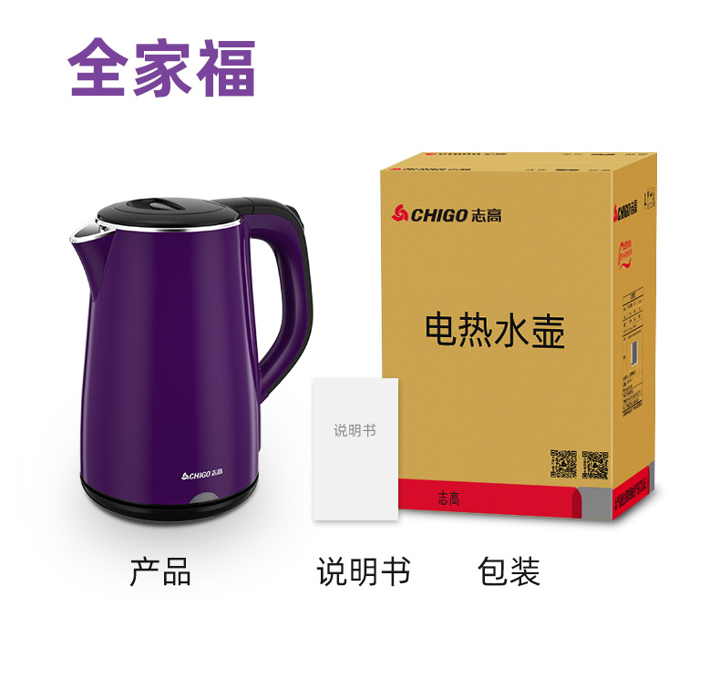 商品名称:志高(CHIGO)电水壶烧水壶电热水壶 304不锈钢双层防烫 1.8L容量 ZD18A-708G8 紫色