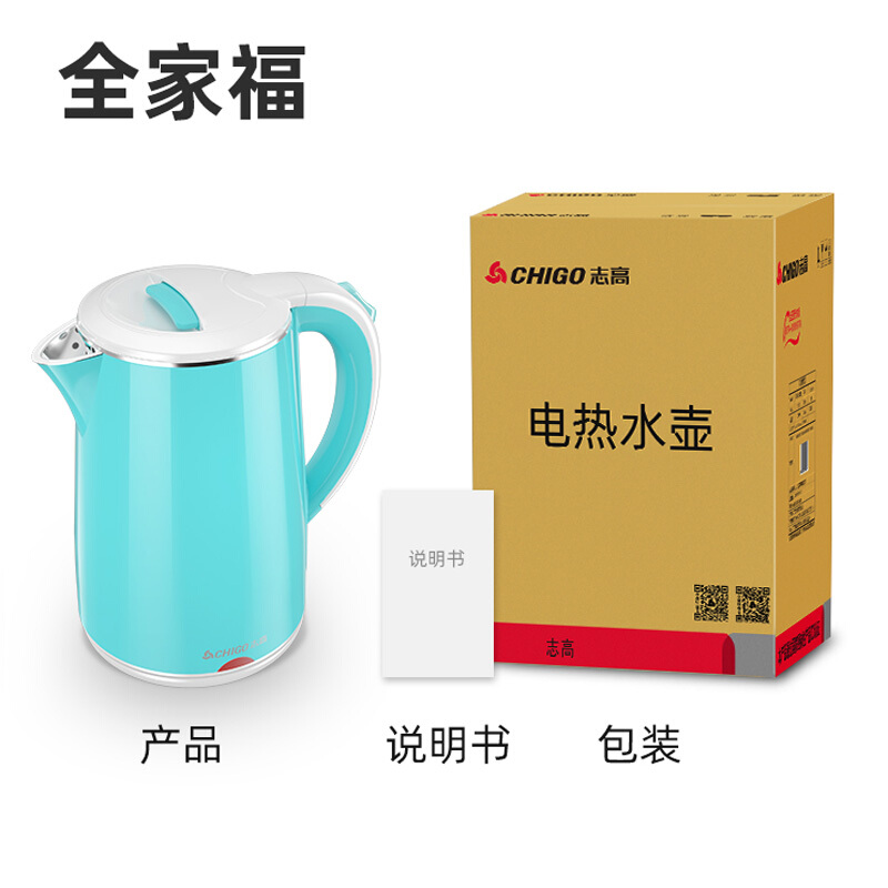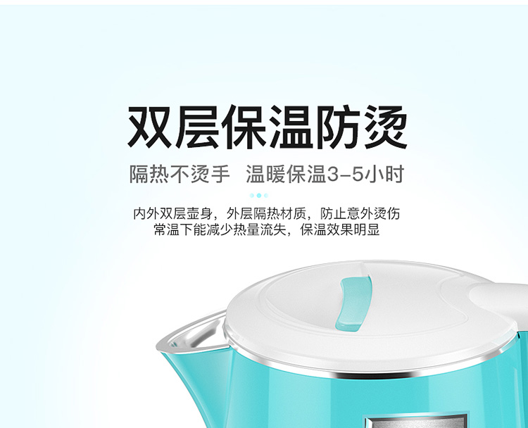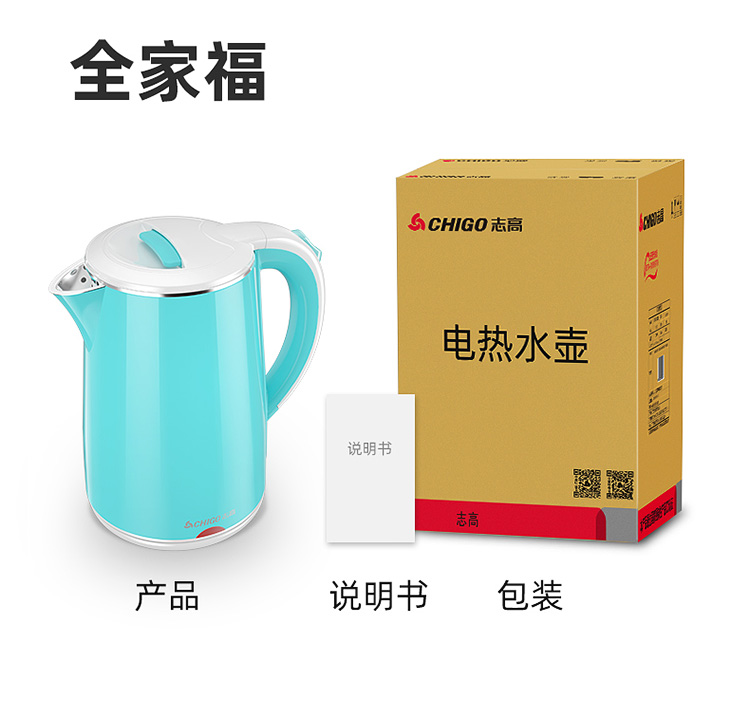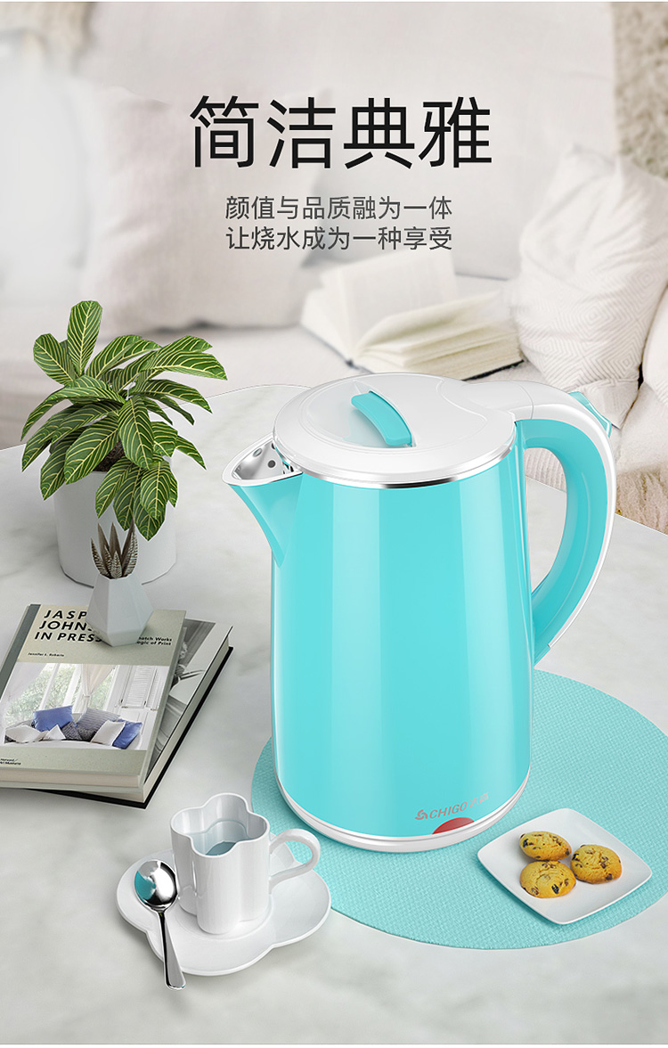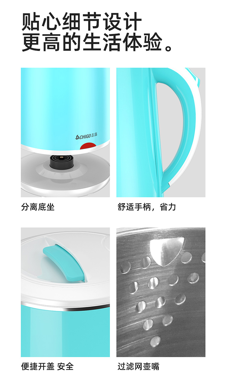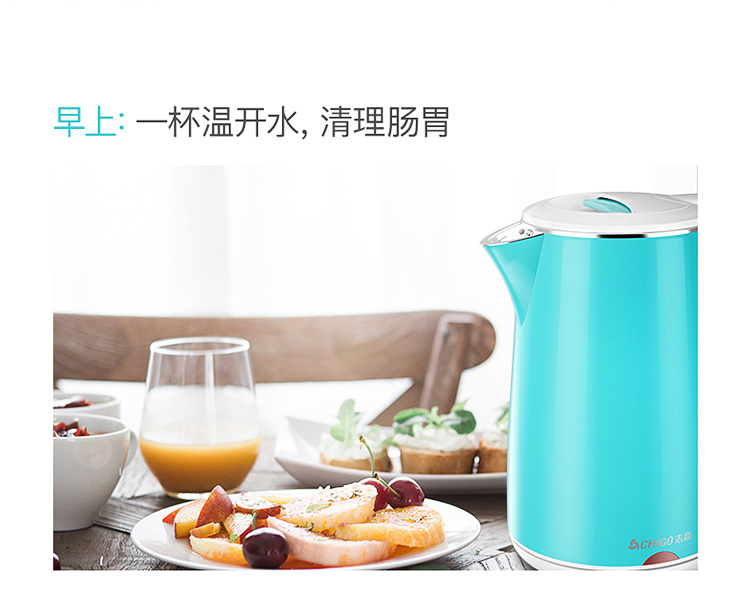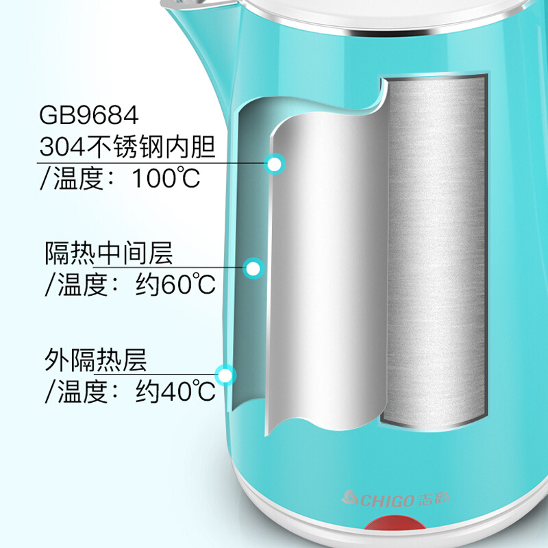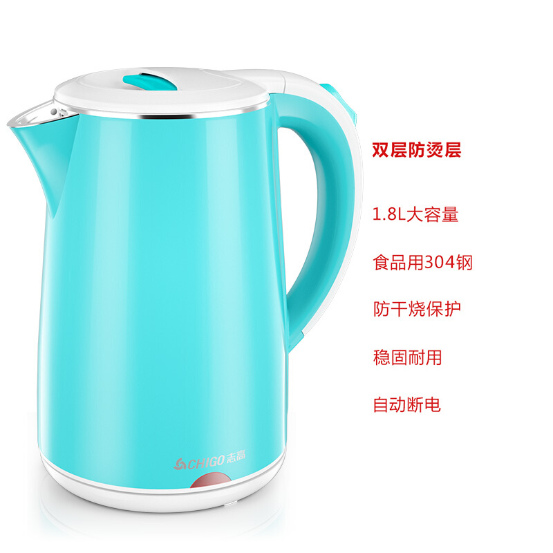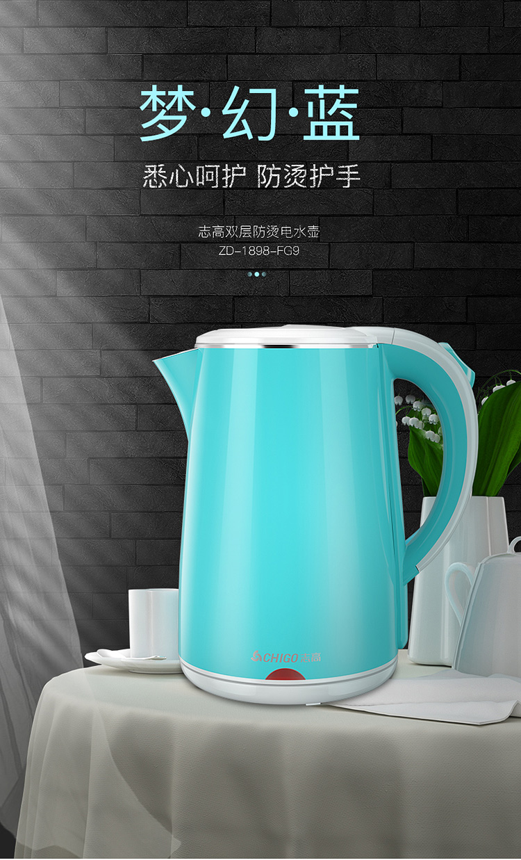 志高(CHIGO)电热水壶 304不锈钢 双层防烫烧水壶 ZD-1898-FG9 1.8L电水壶 蓝色