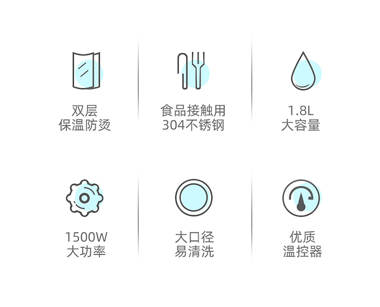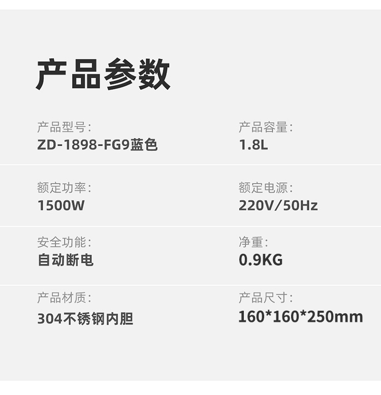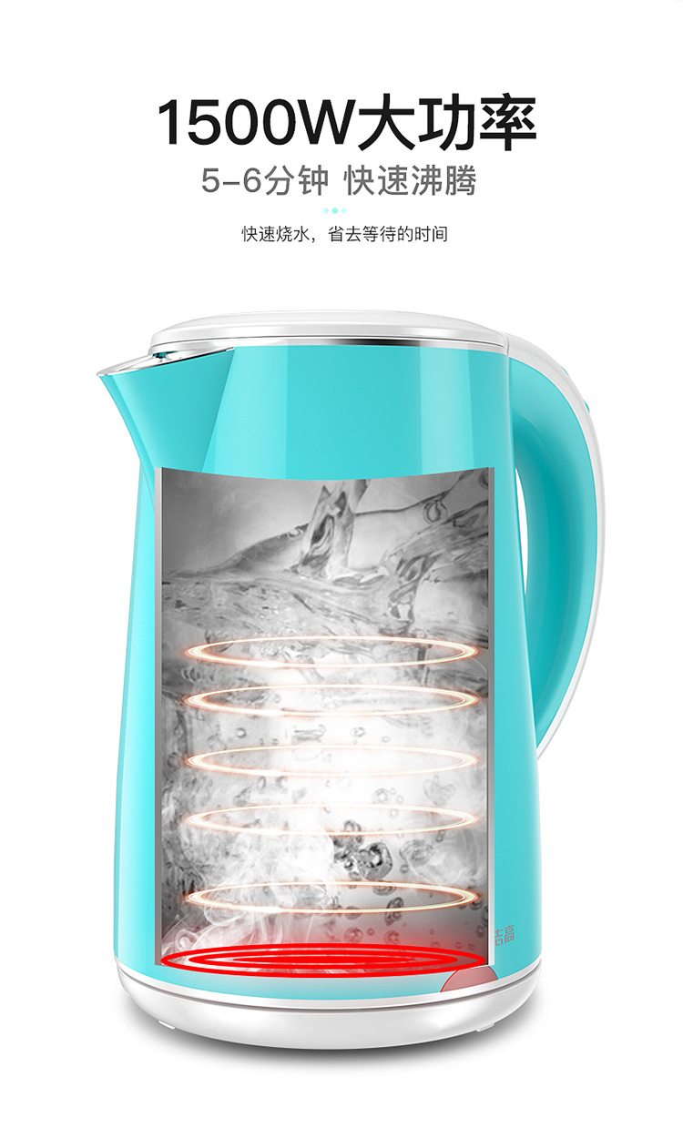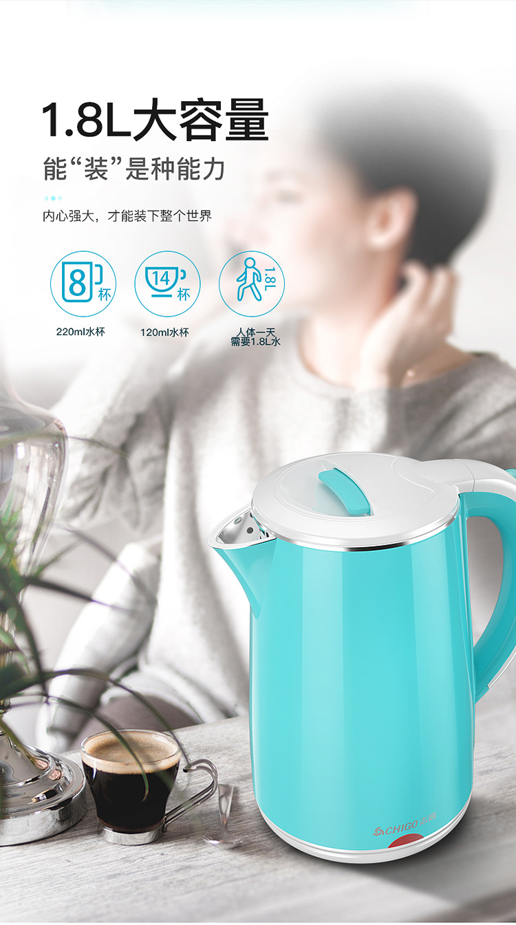 商品名称:志高(CHIGO)电热水壶 304不锈钢 双层防烫烧水壶 ZD-1898-FG9 1.8L电水壶 蓝色