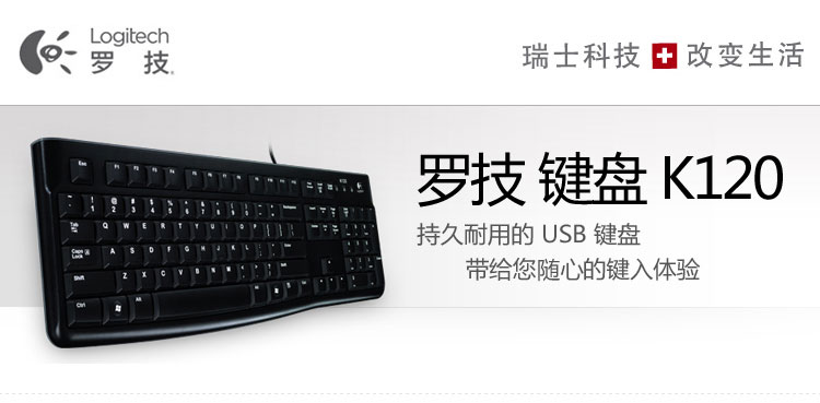 - 商品名称:罗技(Logitech)K120 键盘 有线键盘 办公键盘 全尺寸 黑色U口