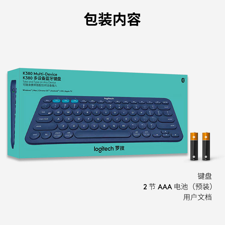 - 商品名称:罗技(Logitech)K380 键盘 无线蓝牙键盘 办公键盘 女性 便携 超薄键盘 笔记本键盘 蓝色