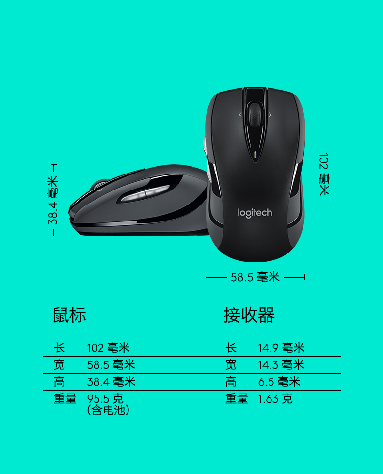 - 商品名称:罗技(Logitech)M546(M545) 鼠标 无线鼠标 办公鼠标 对称鼠标 优联 双轴滚轮 黑色 带无线2.4G接收器