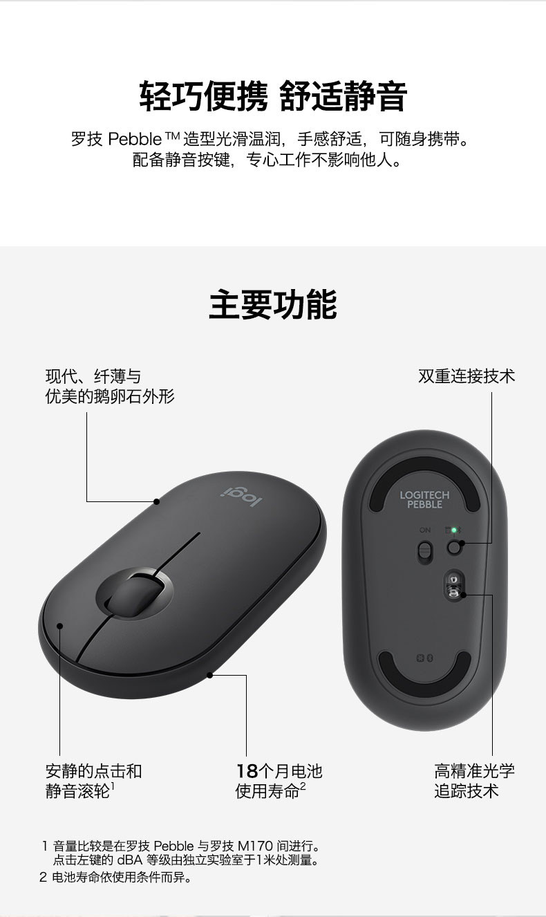 - 商品名称:罗技(Logitech)Pebble鹅卵石 鼠标 无线蓝牙鼠标 办公鼠标 静音鼠标 女性鼠标 便携鼠标 对称鼠标 米白色