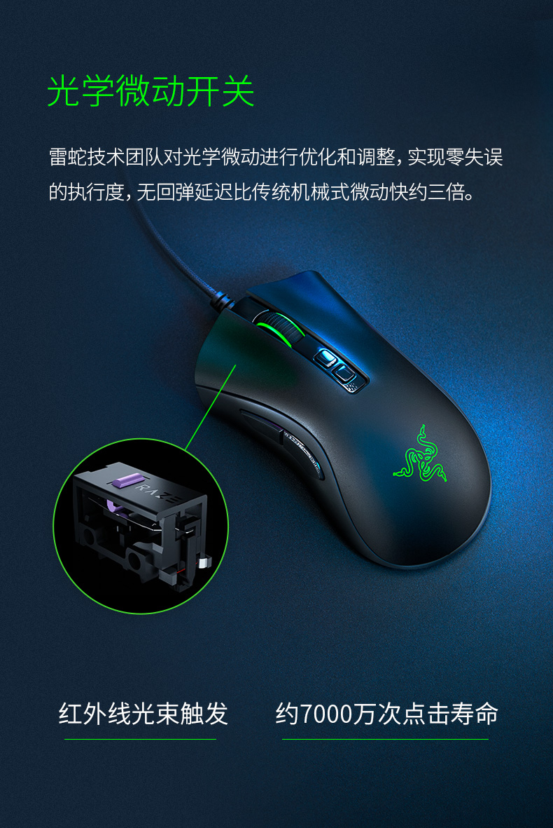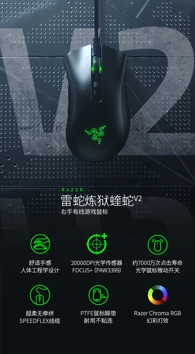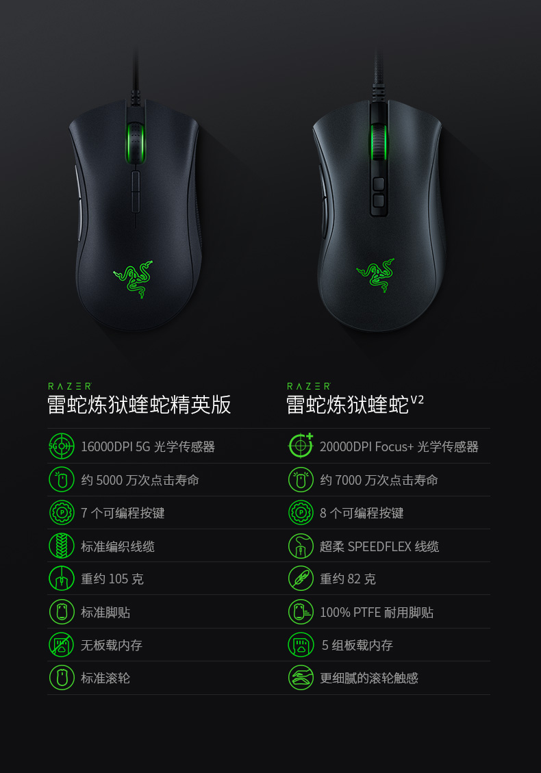- 商品名称:雷蛇 Razer 炼狱蝰蛇V2 鼠标 有线鼠标 游戏鼠标 人体工程学 电竞 黑色 20000DPI lol吃鸡神器cf
