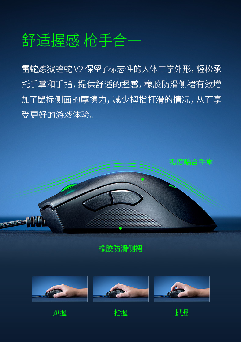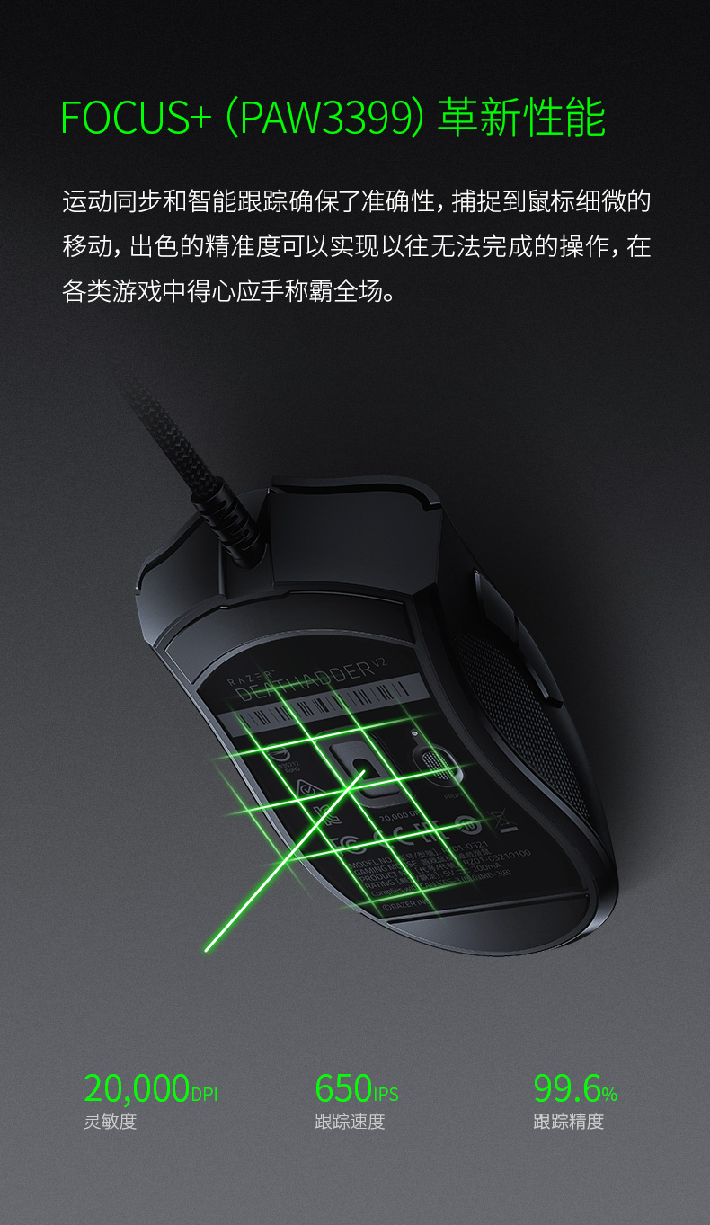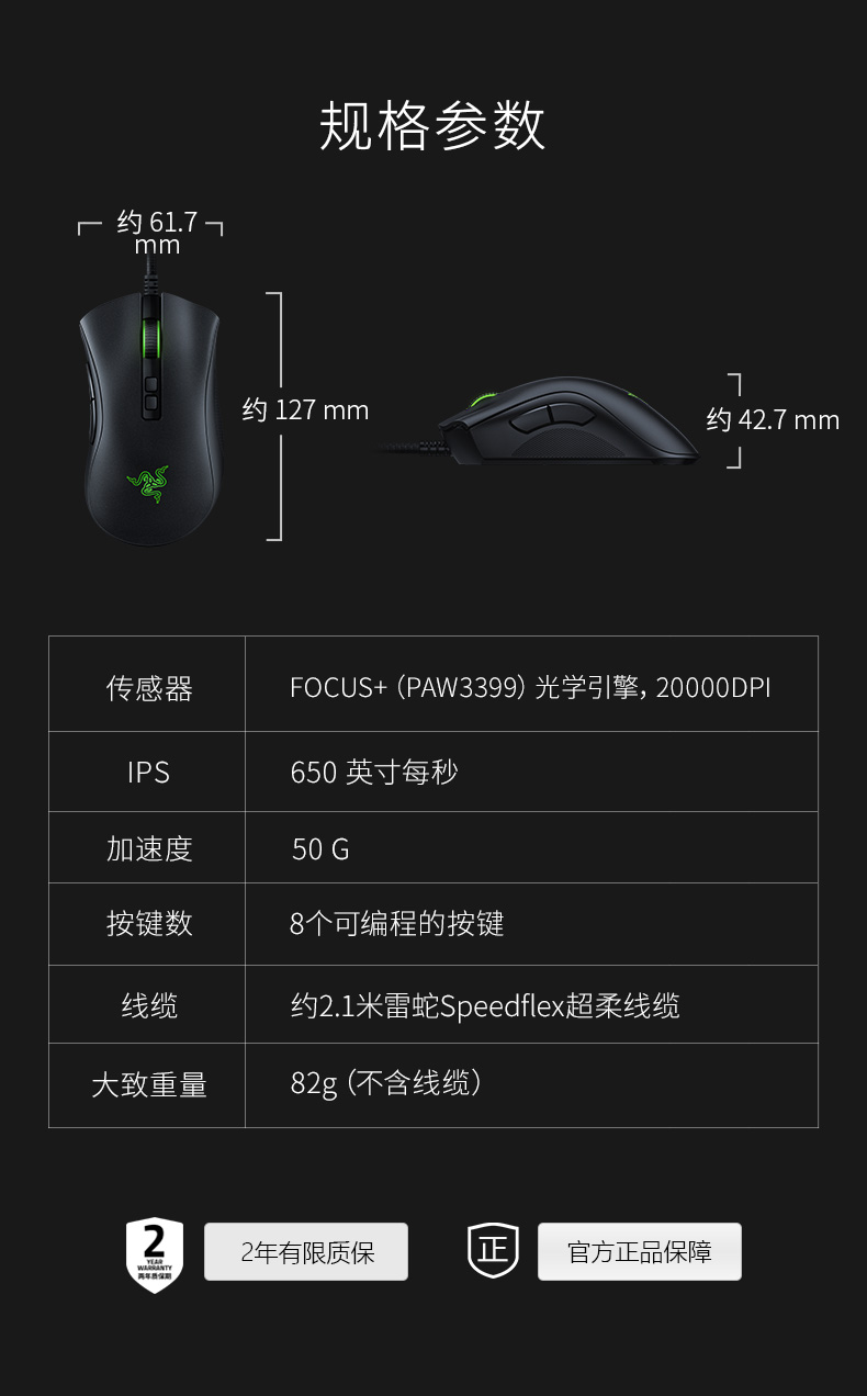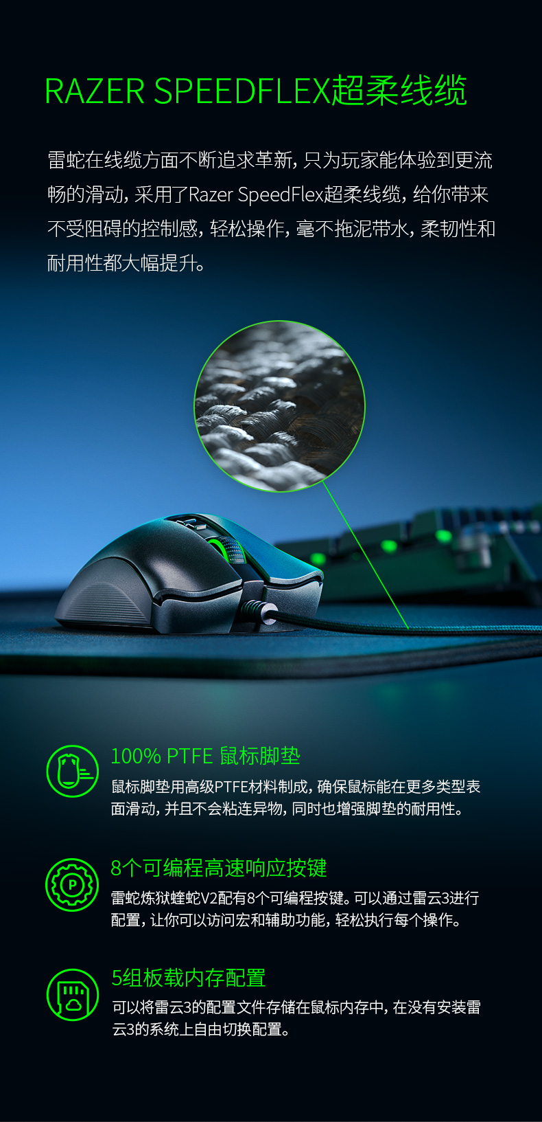 - 商品名称:雷蛇 Razer 炼狱蝰蛇V2 鼠标 有线鼠标 游戏鼠标 人体工程学 电竞 黑色 20000DPI lol吃鸡神器cf