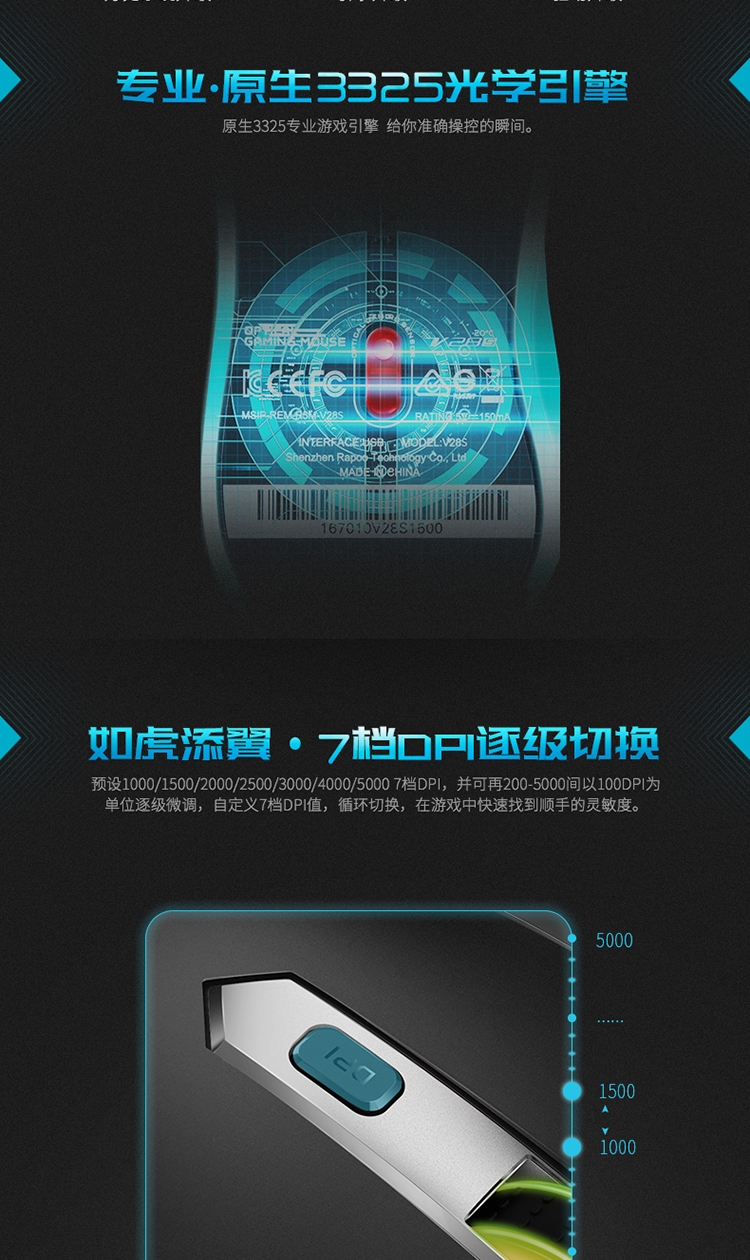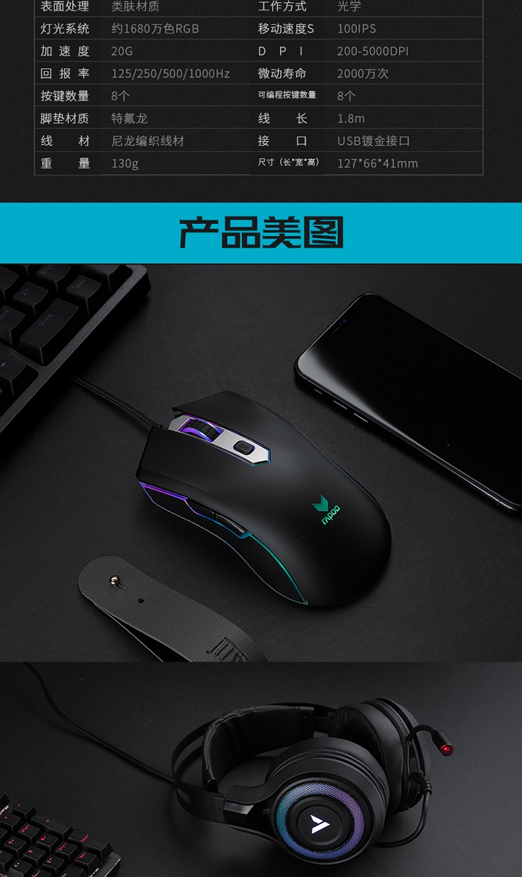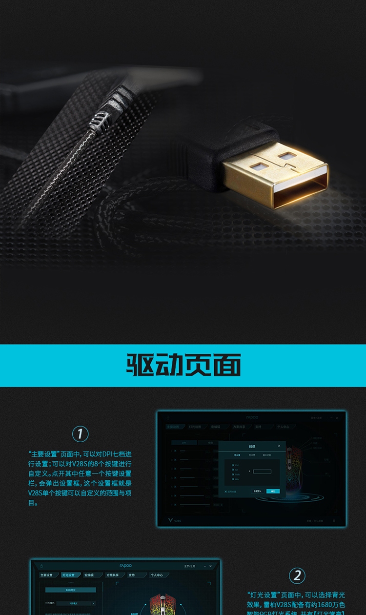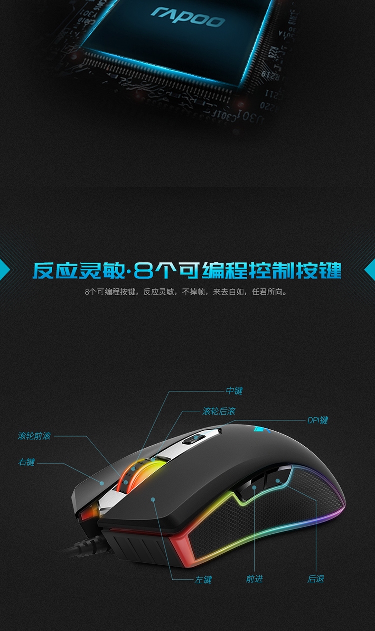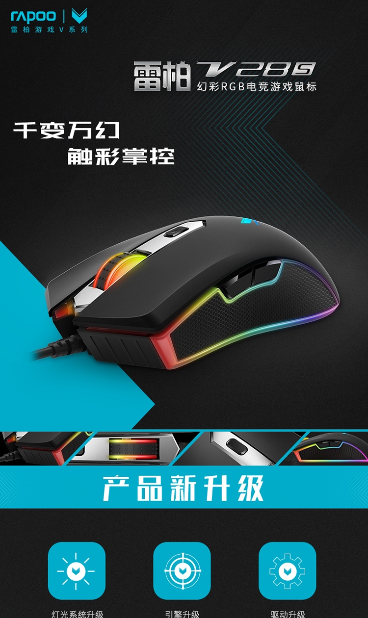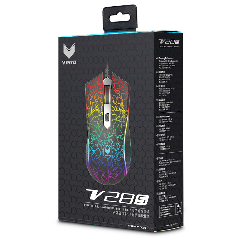 - 商品名称:雷柏(Rapoo) V28S 鼠标 有线鼠标 游戏鼠标 8键可编程 RGB鼠标 电竞鼠标 吃鸡鼠标 鼠标宏定义 黑色