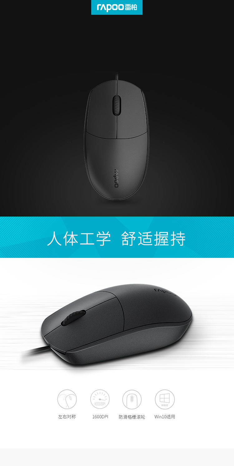- 商品名称:雷柏(Rapoo) N1200S 有线鼠标 办公鼠标 对称鼠标 笔记本鼠标 电脑鼠标 台式机鼠标 黑色
