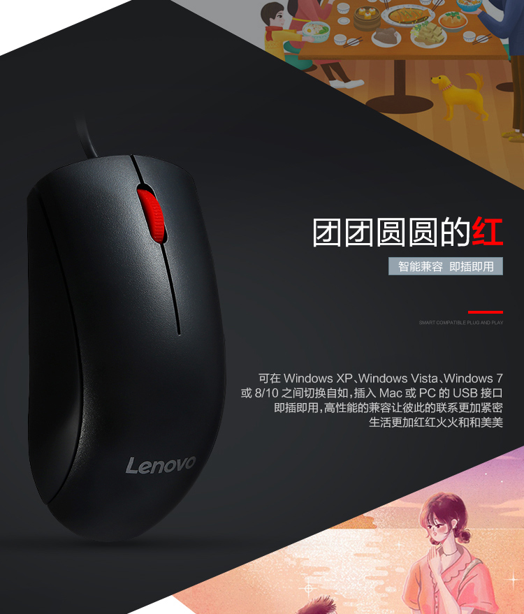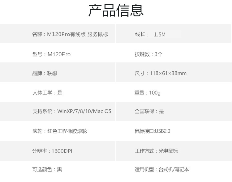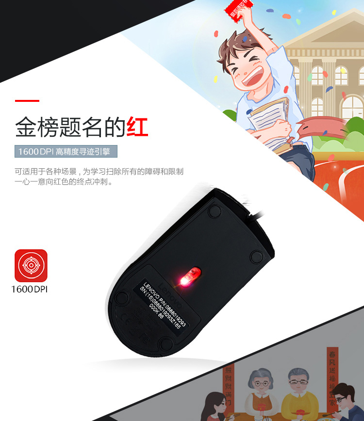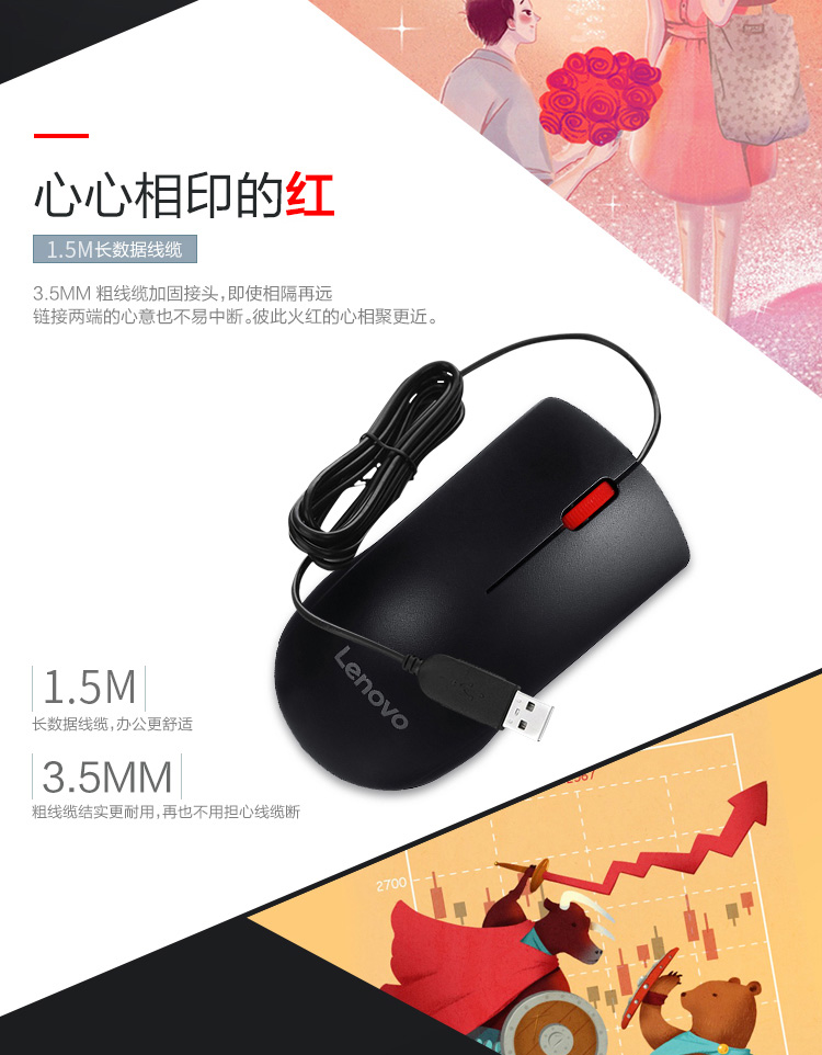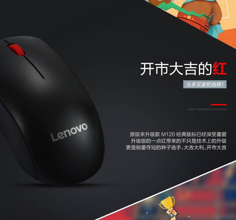 - 商品名称:联想(Lenovo)鼠标有线鼠标 办公鼠标 联想大红点M120Pro有线鼠标 笔记本台式机鼠标