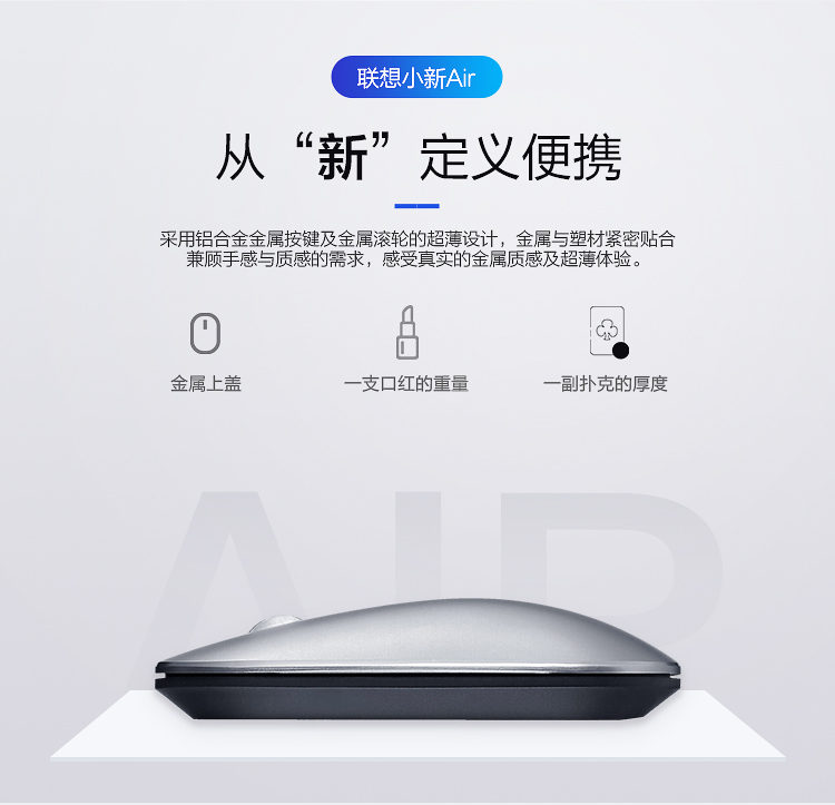 - 商品名称:联想(Lenovo)鼠标 无线鼠标 蓝牙鼠标 小新Air蓝牙无线鼠标 便携办公鼠标 台式机笔记本鼠标 星空灰
