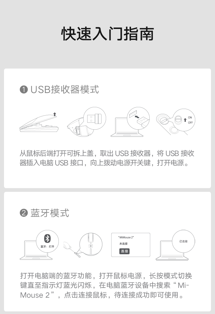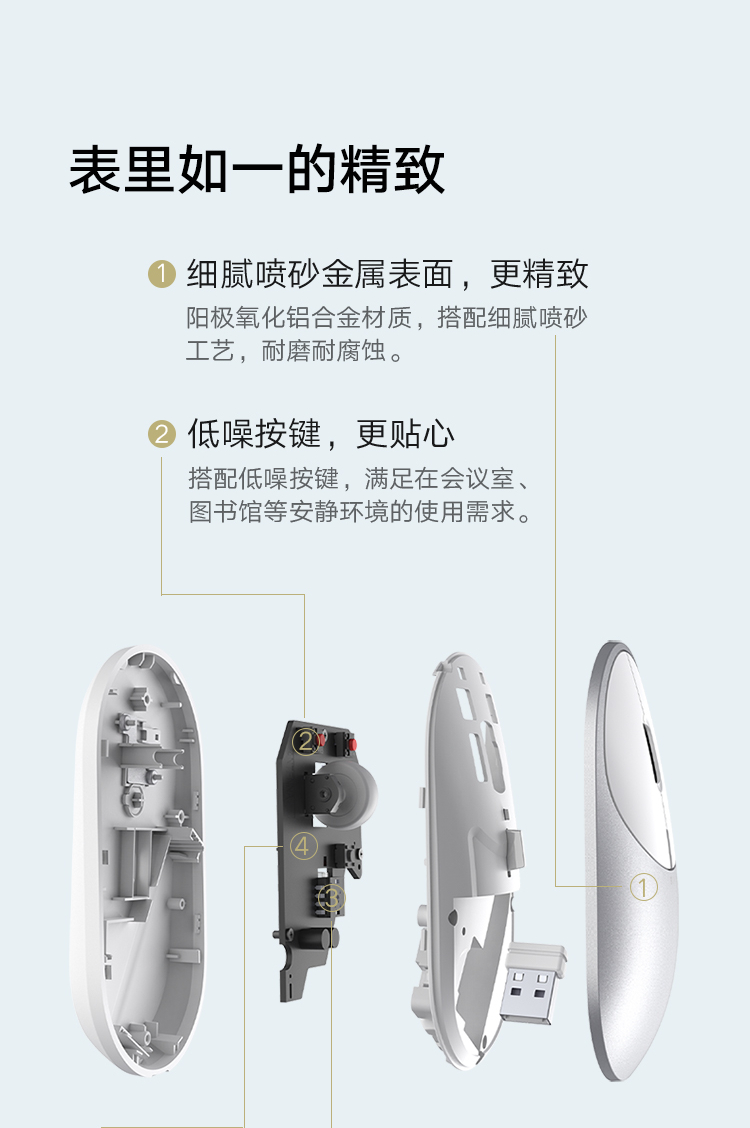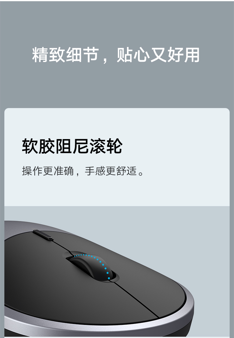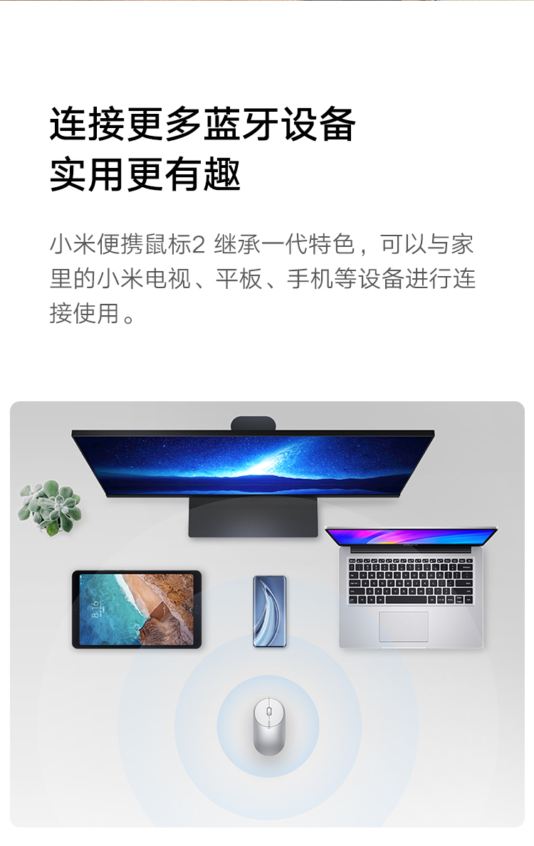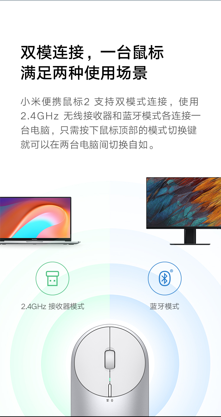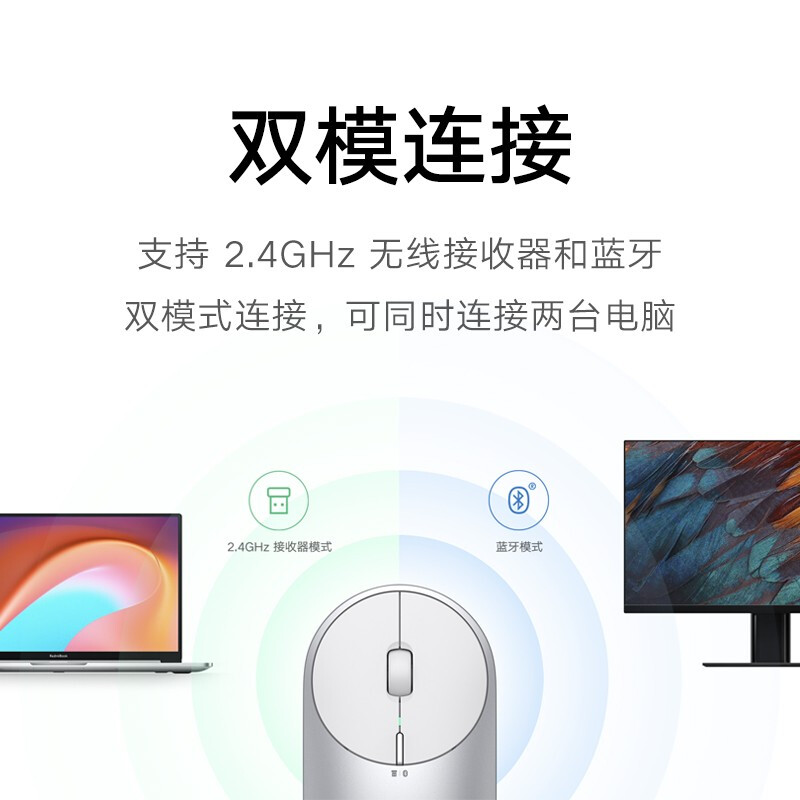 - 商品名称:小米 便携鼠标2 银色 4档DPI调节 金属质感 双模连接 轻薄圆润 笔记本办公 无线鼠标