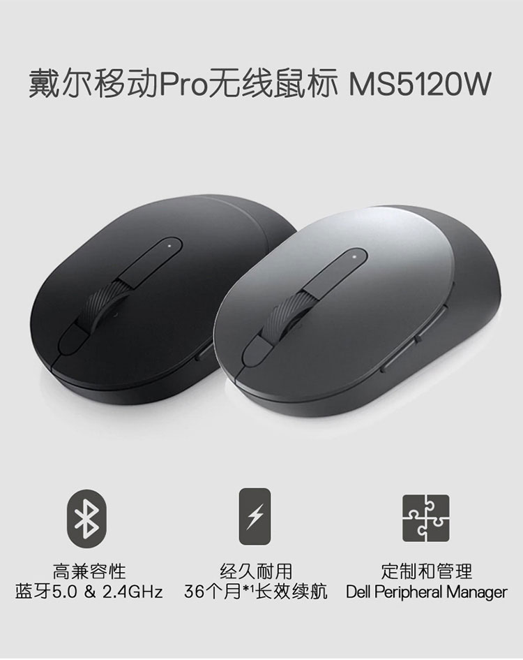 戴尔(DELL)MS5120W移动Pro无线鼠标 笔记本台式机办公鼠标 双模连接 长续航 泰坦灰