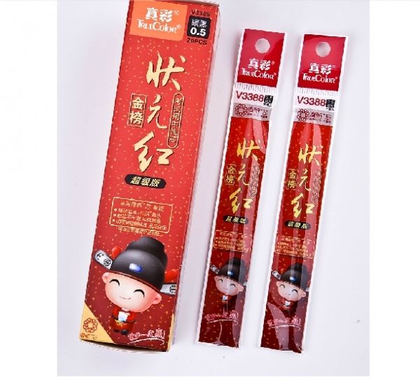 - 商品名称:真彩正品状元红V3388中性笔芯子弹头0.5mm 20支/盒