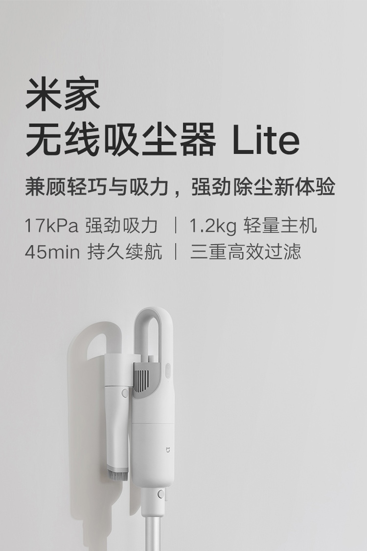 - 商品名称:米家 小米吸尘器无线手持Lite 轻量化设计 2档吸力 45分钟续航 壁挂式收纳MJWXCQ03DY