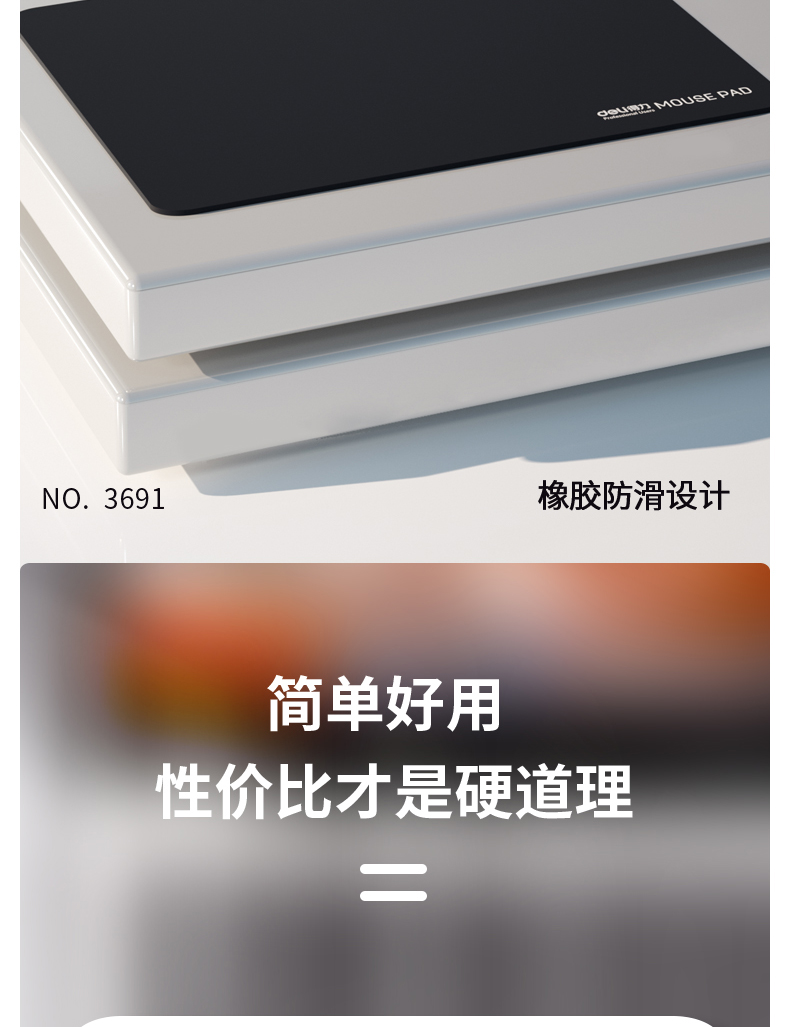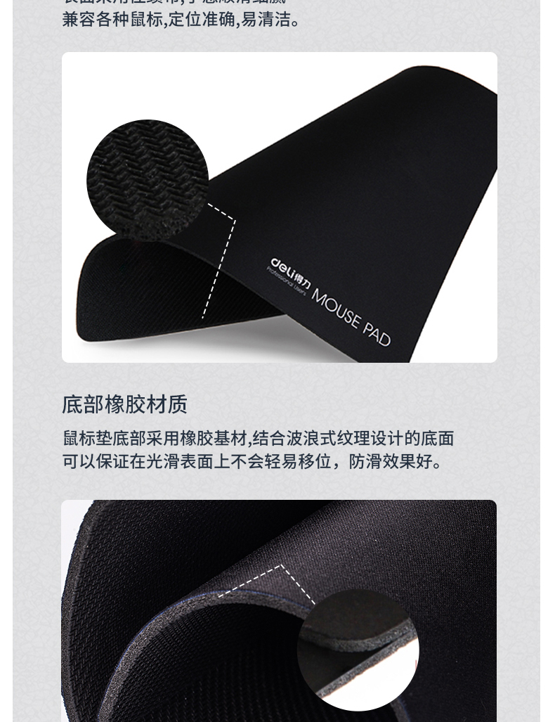 - 商品名称:得力(deli)耐磨办公游戏鼠标垫 办公用品 黑色3691