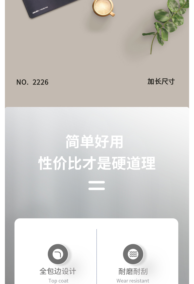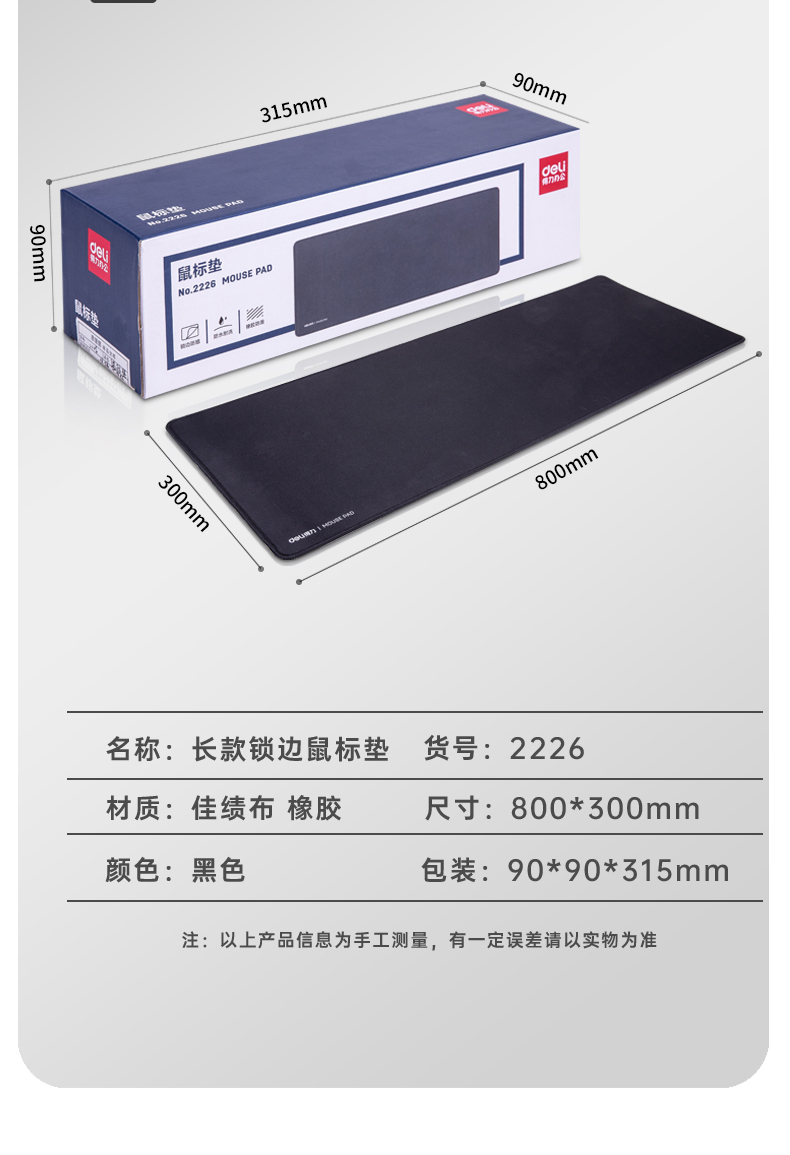 - 商品名称:得力(deli)锁边防水办公游戏大型鼠标垫桌垫键盘垫 黑色2226