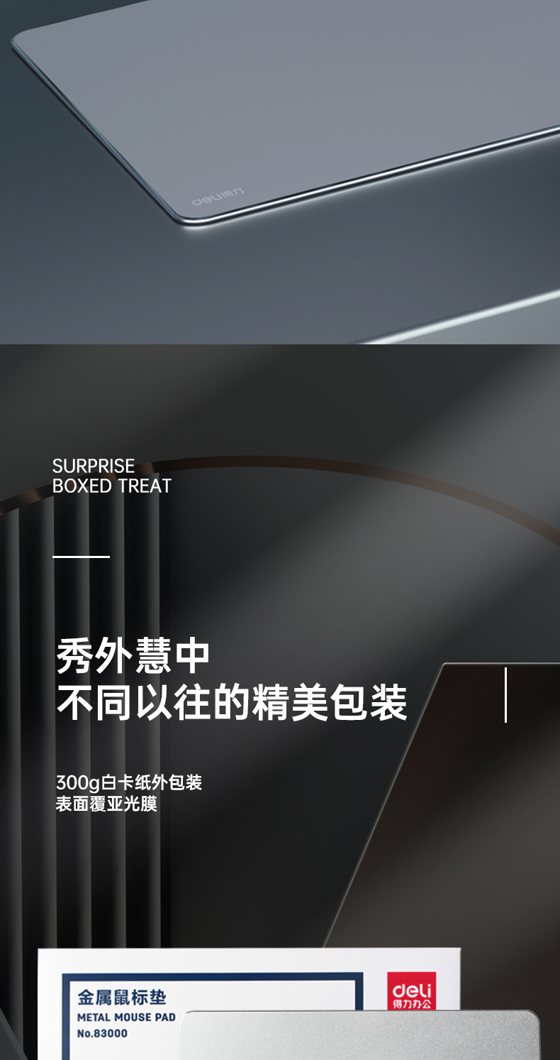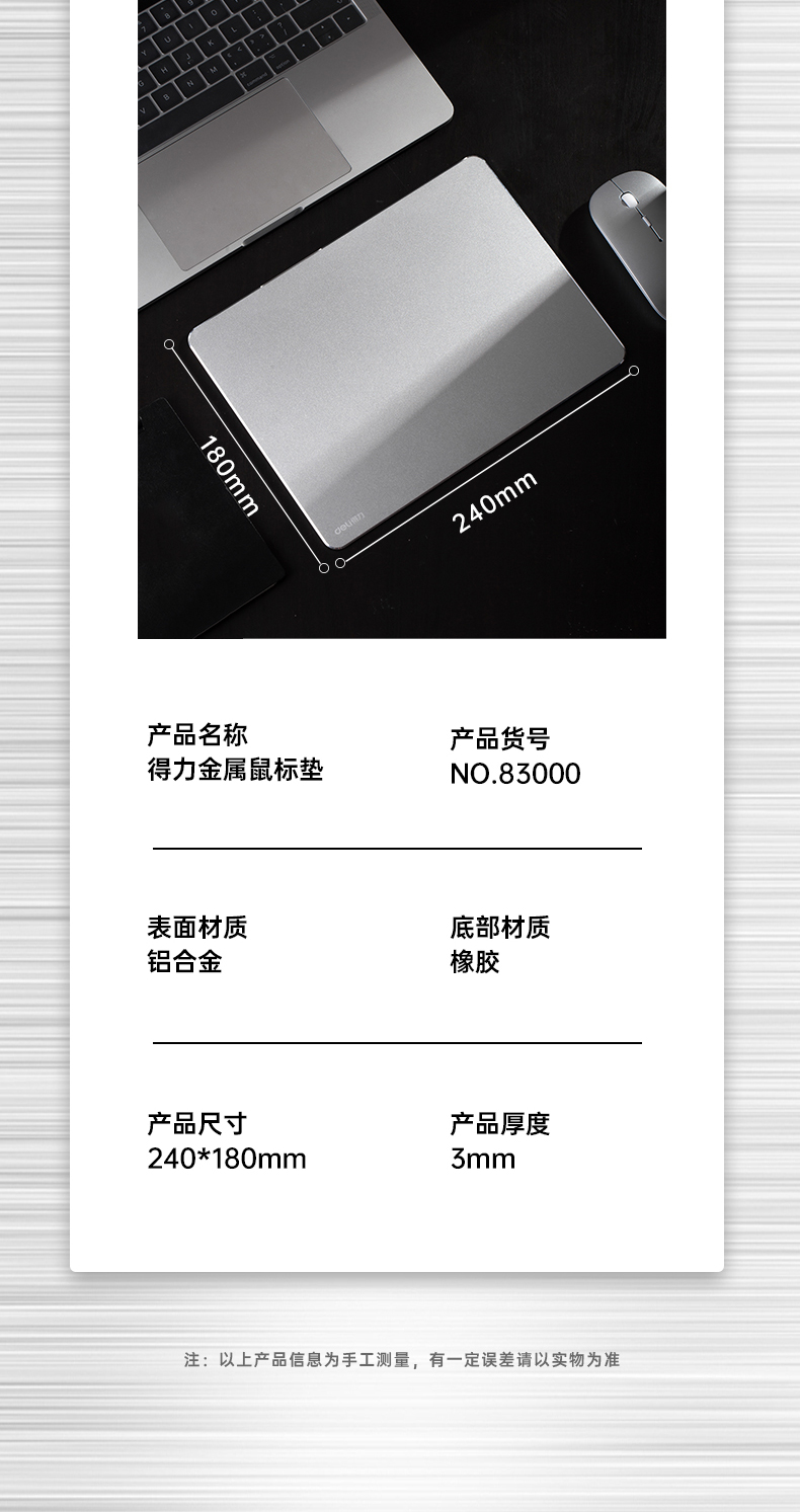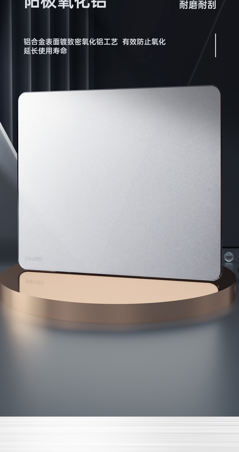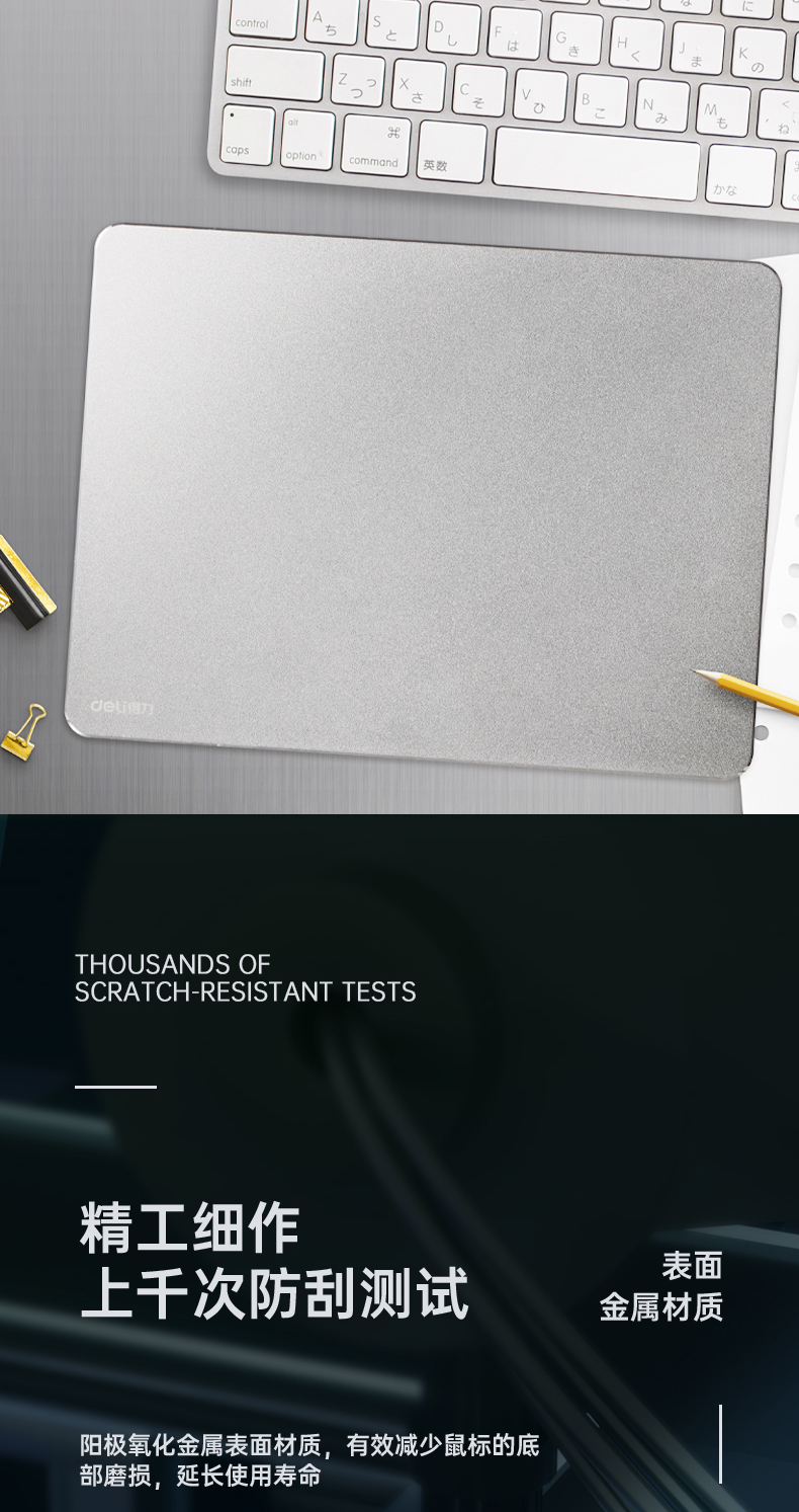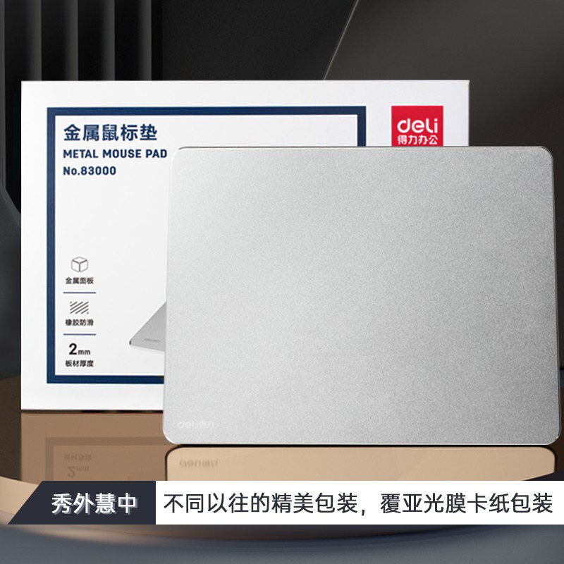 - 商品名称:得力(deli)金属防滑鼠标垫 办公游戏铝合金鼠标垫 银色83000