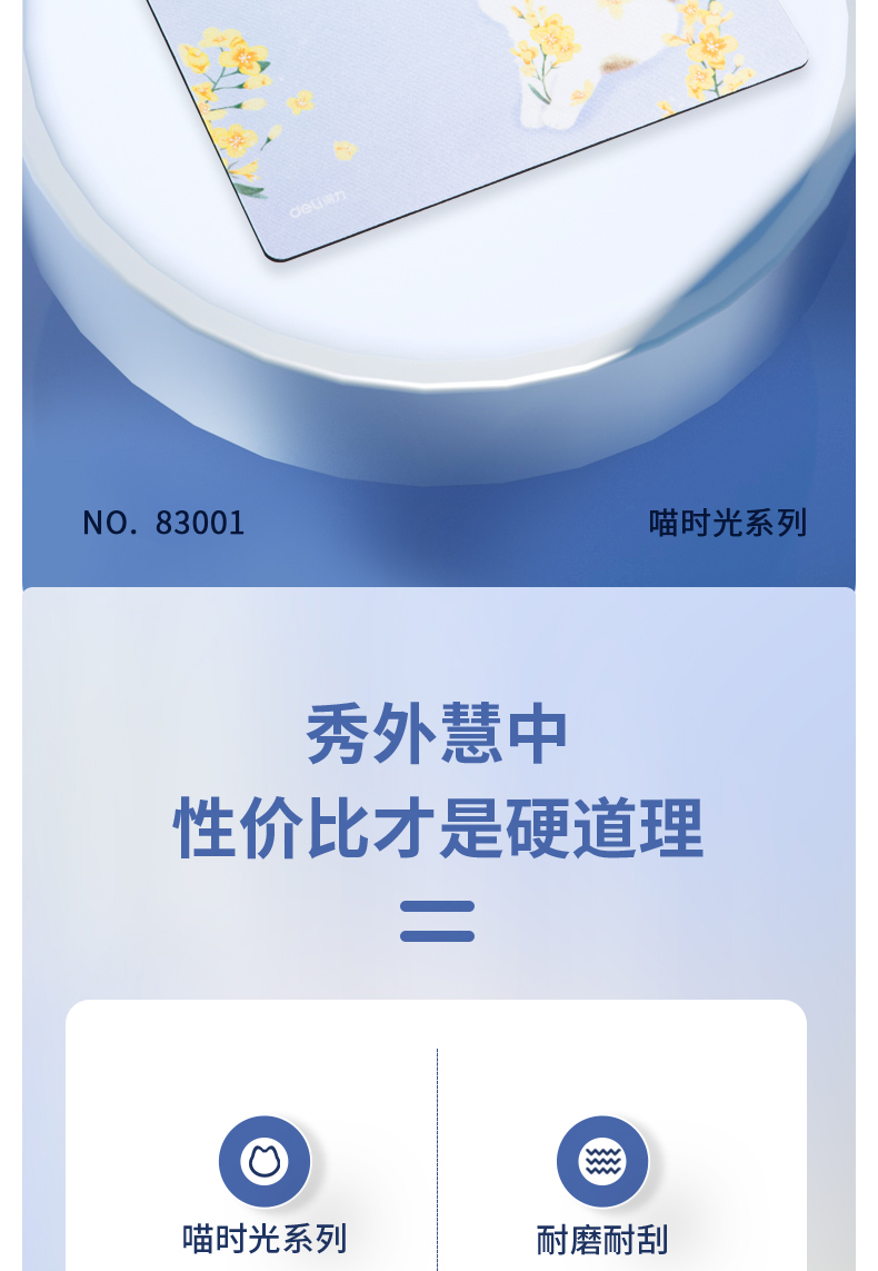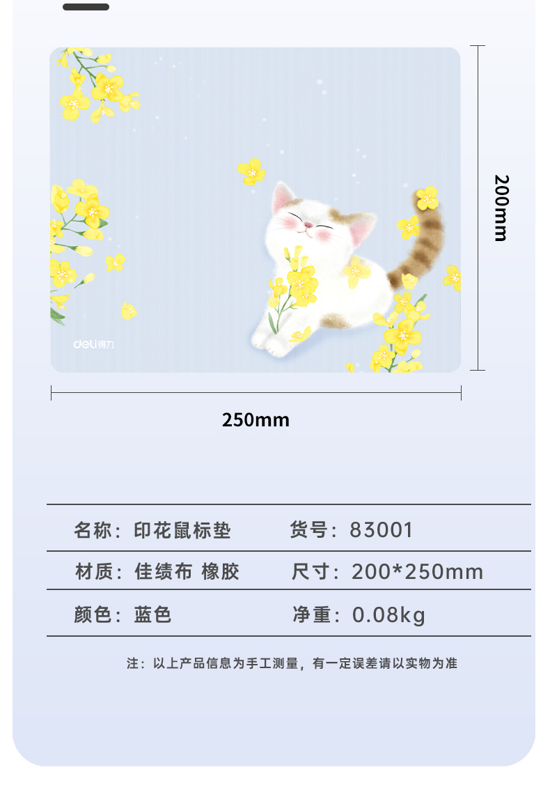 - 商品名称:得力(deli)办公游戏鼠标垫 时尚印花橡胶防滑 办公用品 蓝色83001