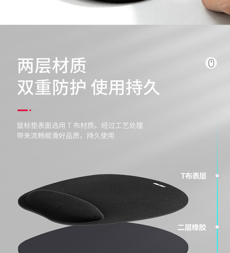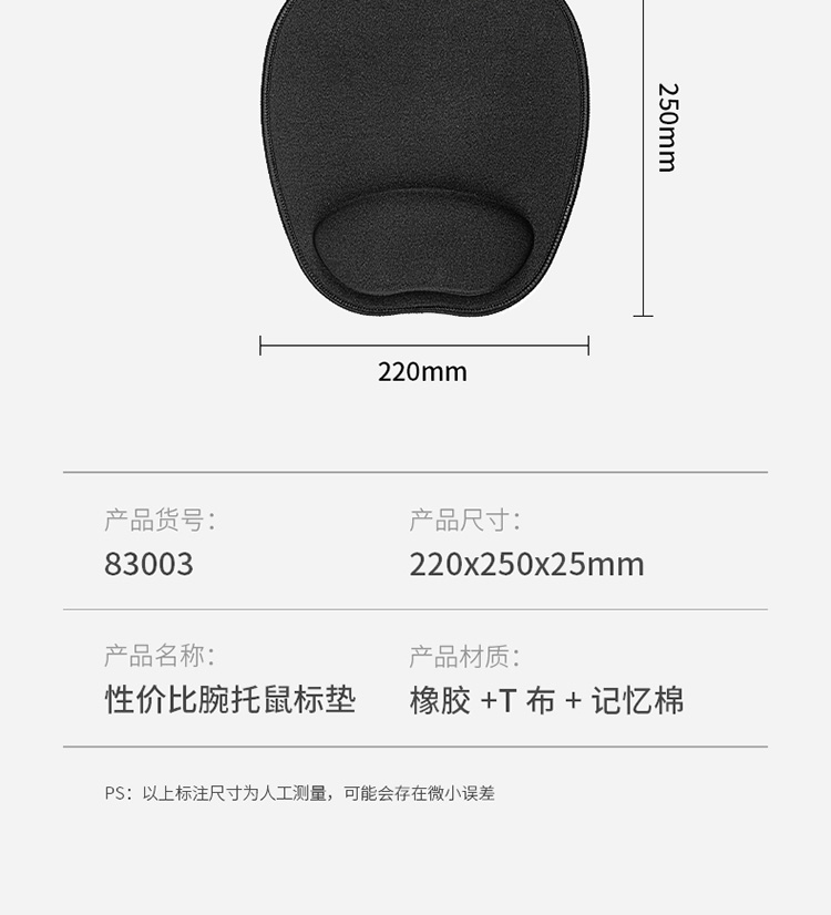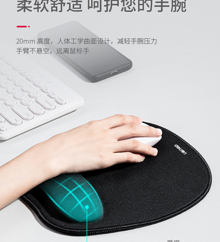商品名称:得力(deli) 腕托鼠标垫 舒适记忆海绵 办公游戏鼠标垫 83003