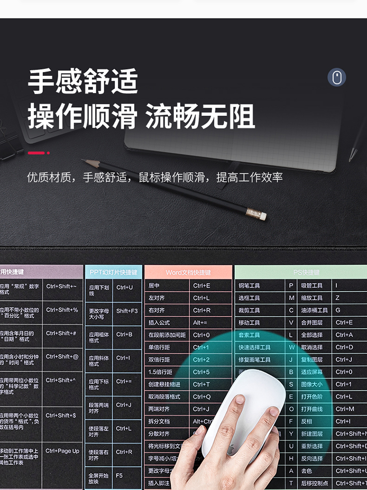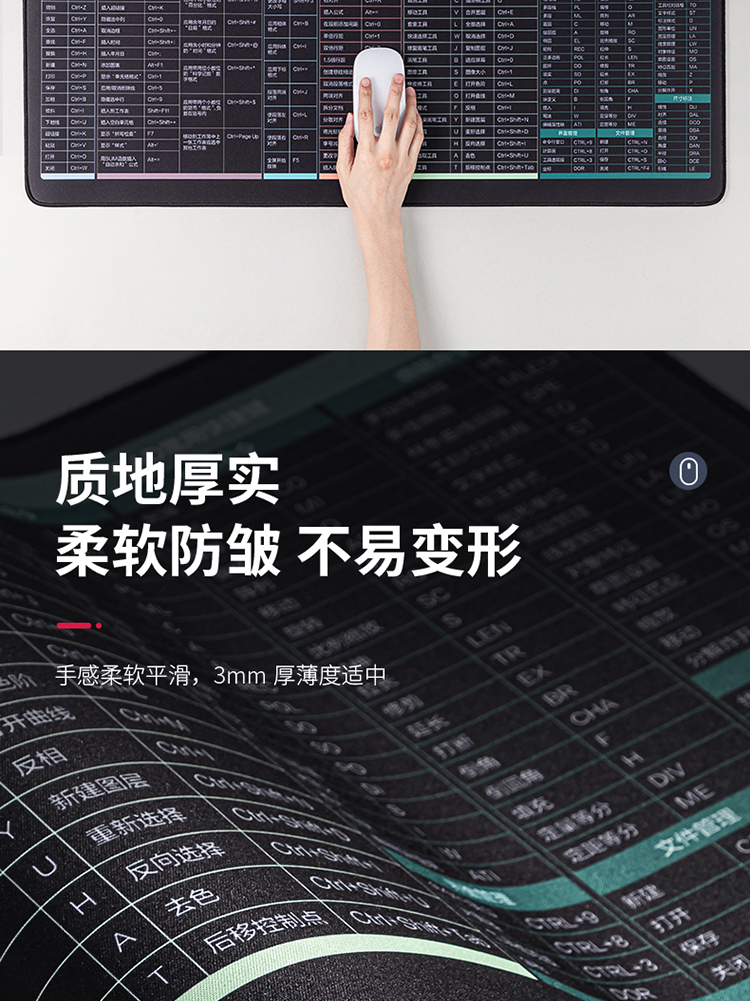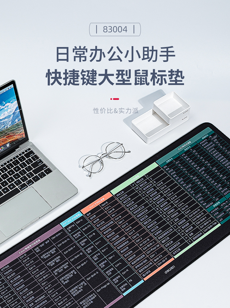 - 商品名称:得力(deli) 快捷键鼠标垫 800*300*3mm 快捷键大全大号鼠标垫 锁边加厚办公电脑键盘桌垫 83004