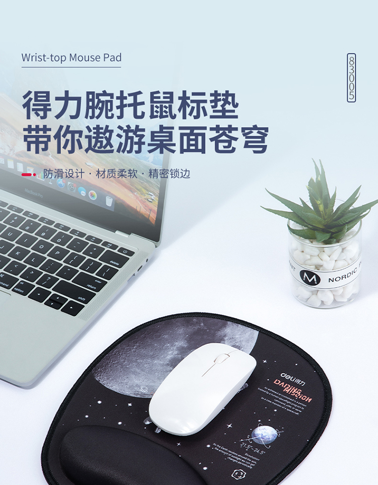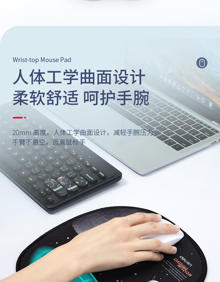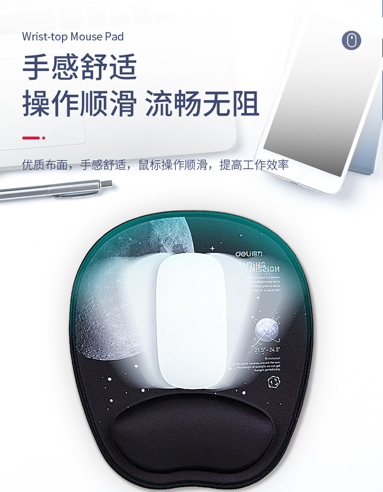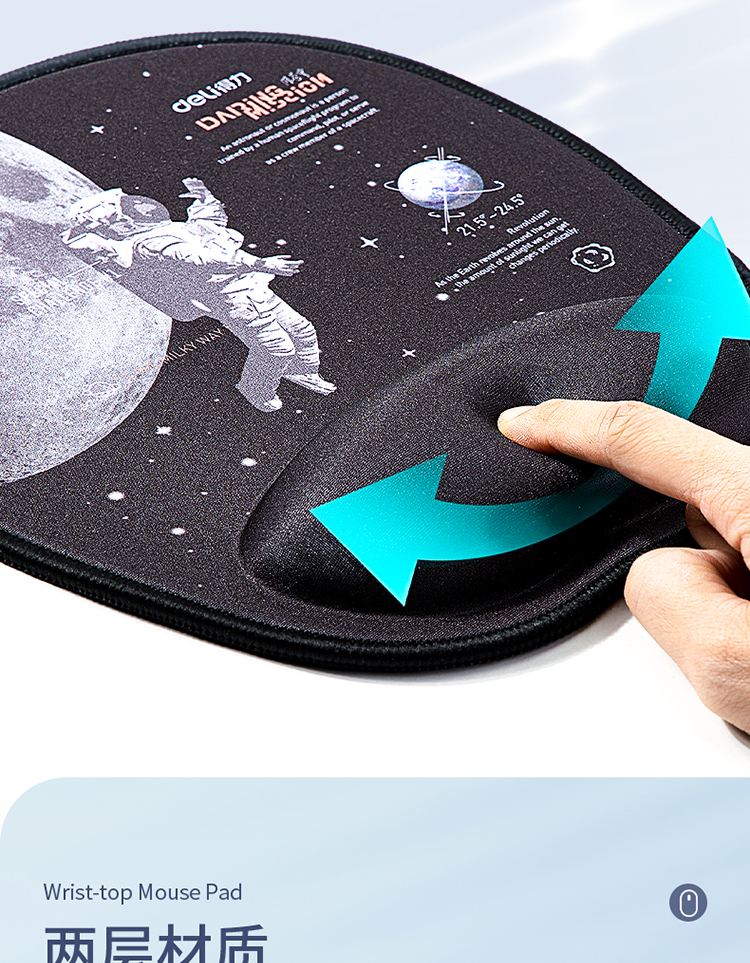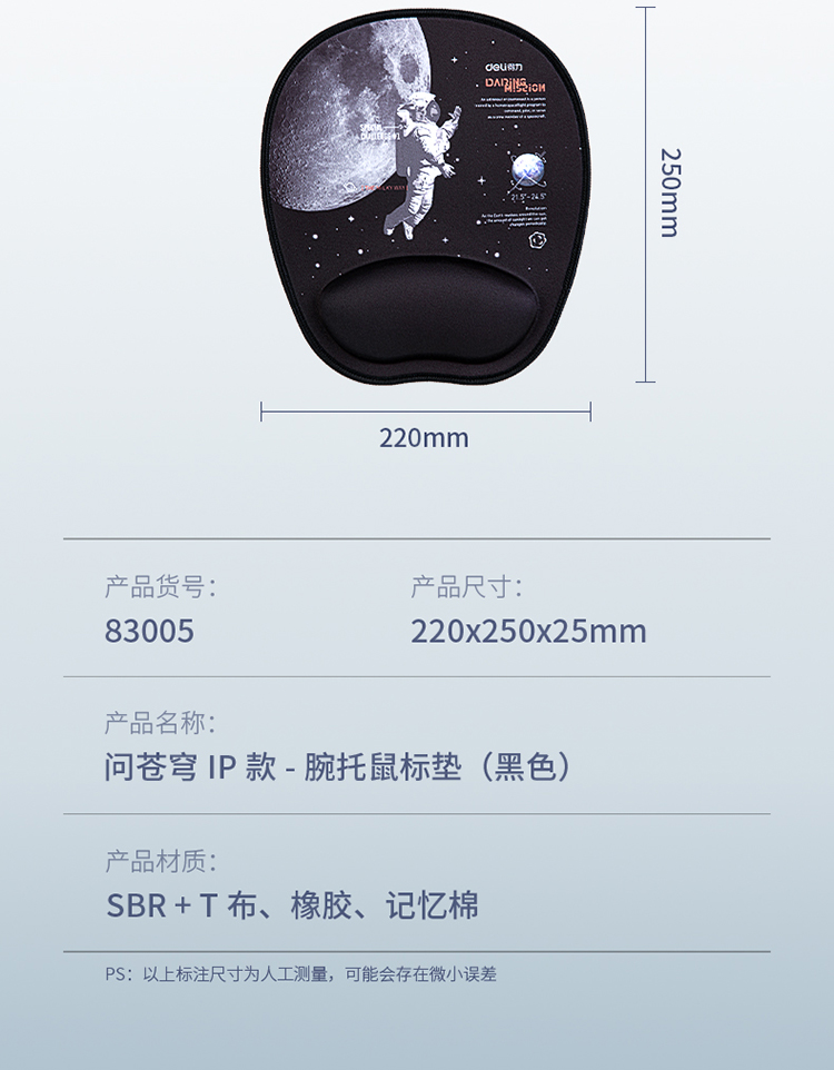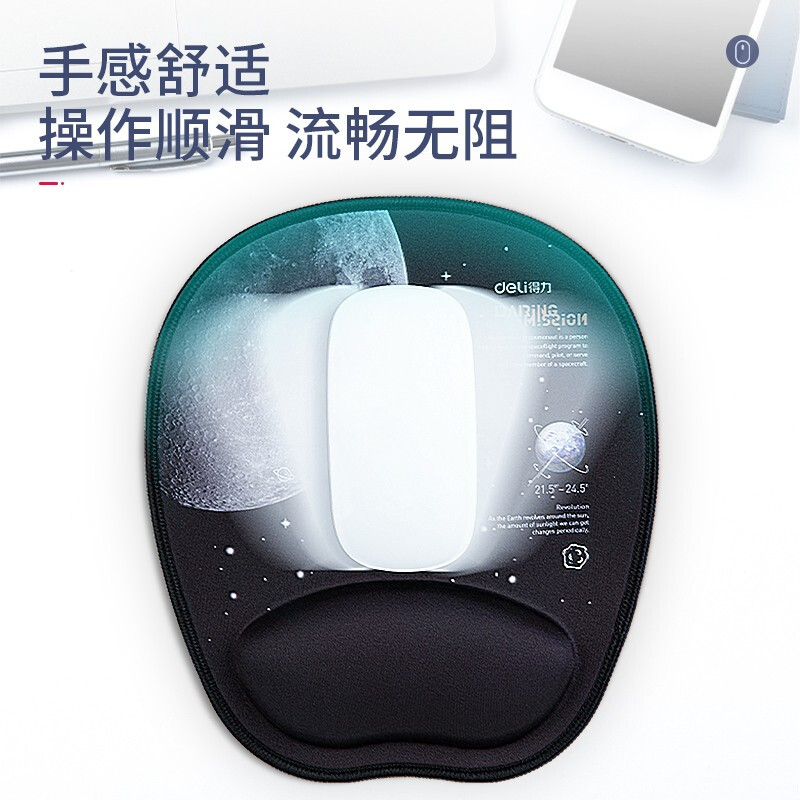 - 商品名称:得力(deli)舒适记忆棉腕托鼠标垫 办公游戏鼠标垫 中国航天 黑色83005