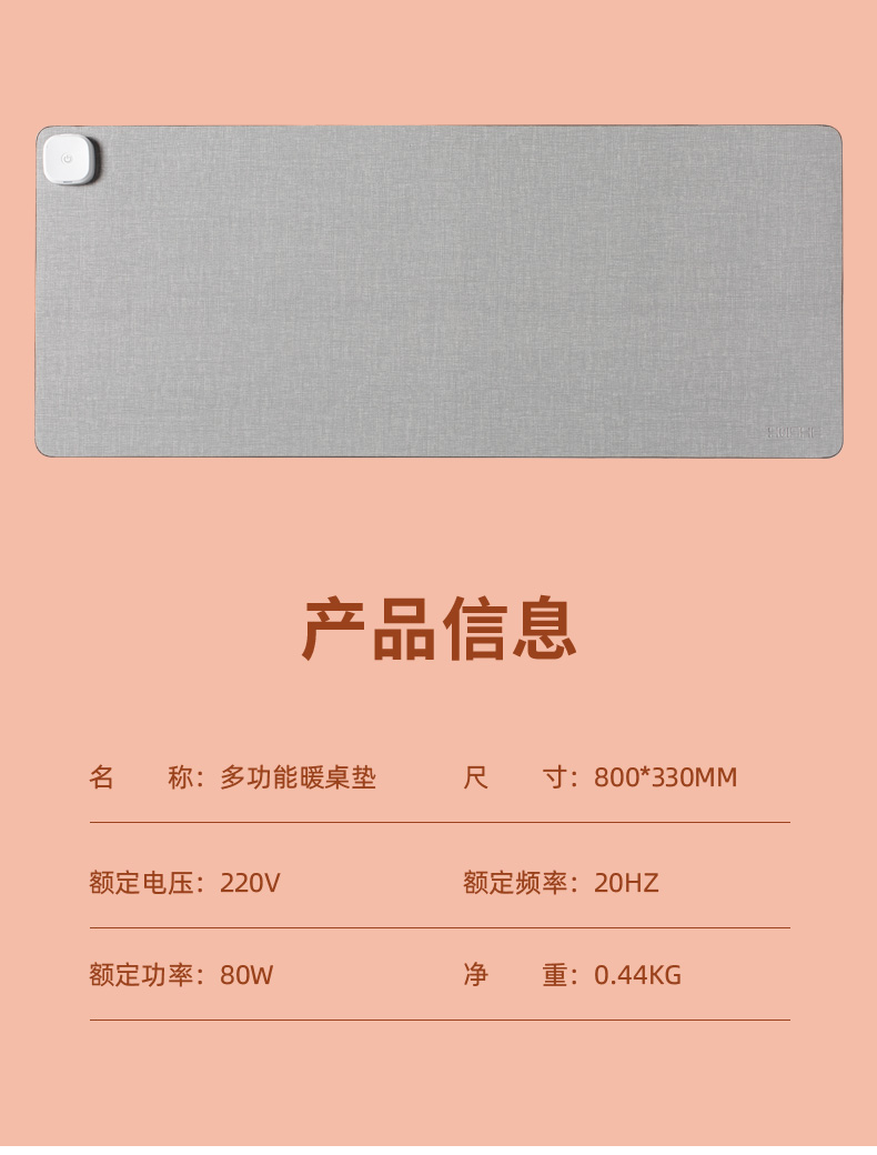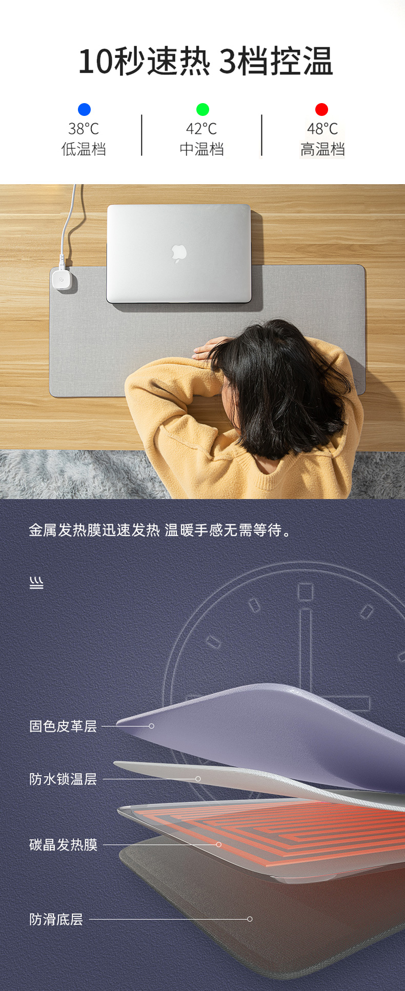 - 商品名称:现代翼蛇(HYesir)发热鼠标垫【新国标3C认证】加热暖桌垫 办公室电热键盘垫 电暖宝暖手鼠标垫S-80银灰