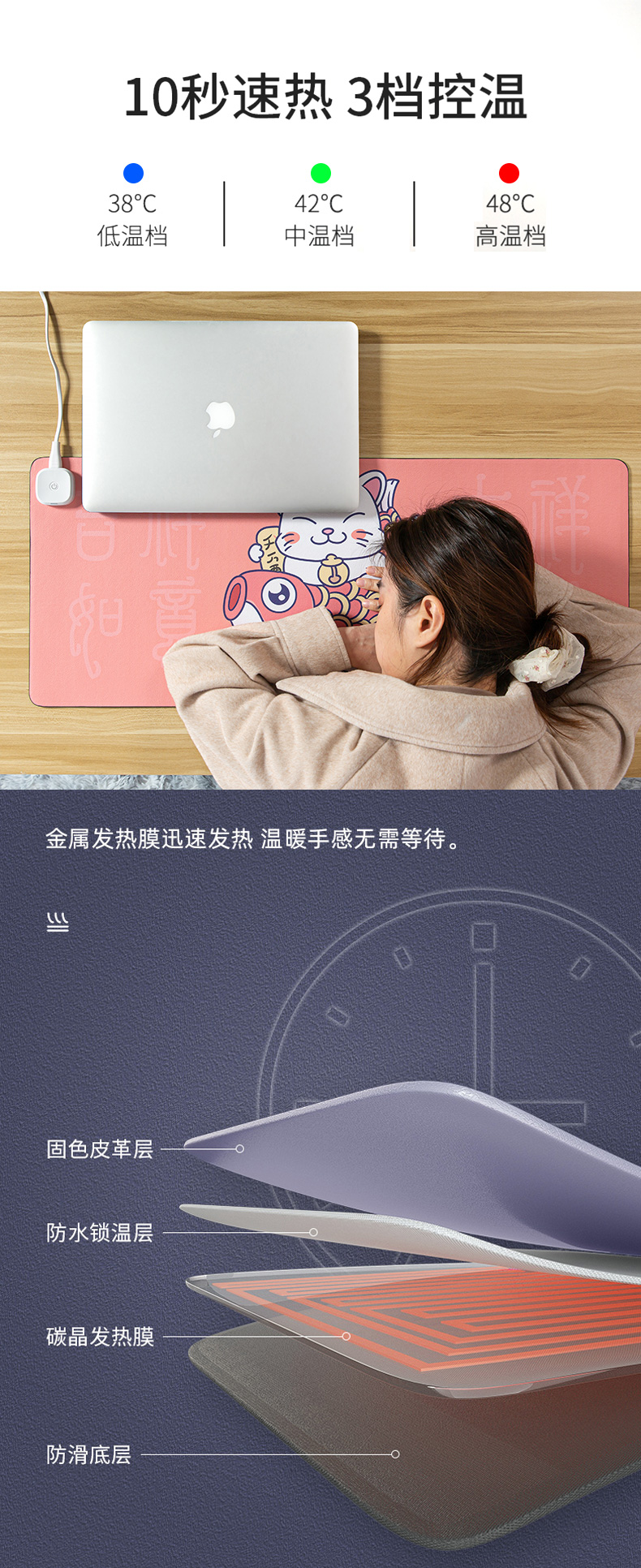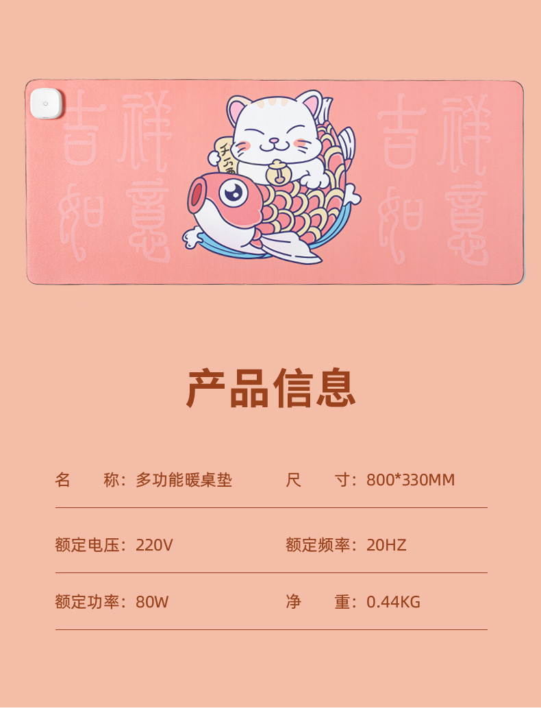 - 商品名称:现代翼蛇(HYesir)发热鼠标垫【新国标3C认证】加热暖桌垫 办公室电热键盘垫 电暖宝暖手鼠标垫S-80锦鲤猫