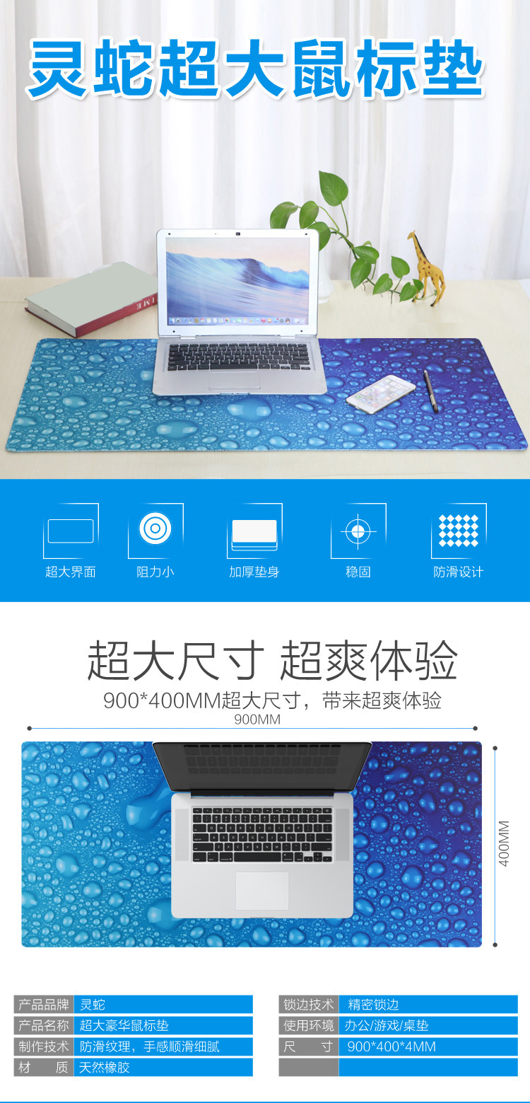 - 商品名称:灵蛇(LINGSHE)鼠标垫 900*400*4 超大加厚办公游戏鼠标垫 精密锁边 可水洗P32水滴 礼盒装