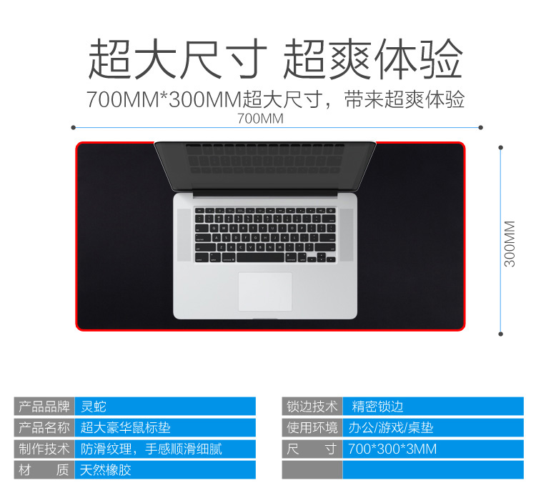 商品名称:灵蛇(LINGSHE)鼠标垫 700*300*3超大加厚办公游戏鼠标垫 精密锁边 可水洗P70黑色 礼盒装