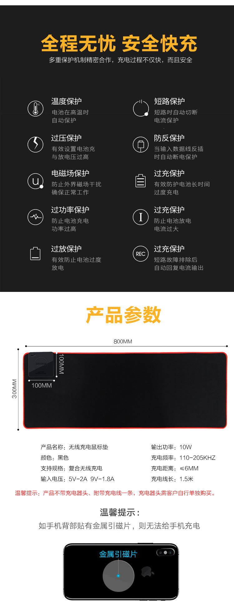 - 商品名称:灵蛇(LINGSHE)无线充电器鼠标垫 800*300*3 安卓苹果通用 10W无线快充P99 礼盒装