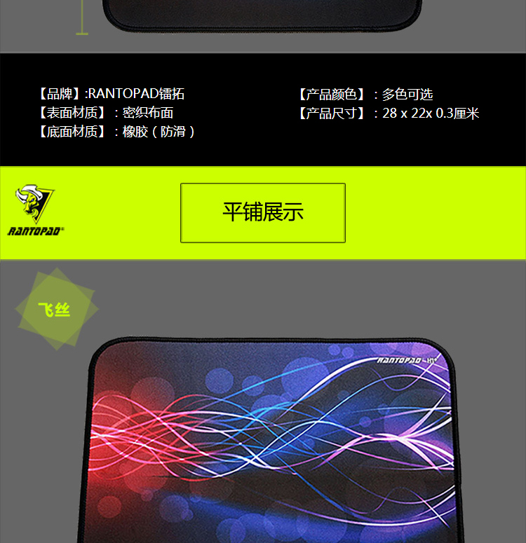 - 商品名称:镭拓(Rantopad) H1+橡胶布面锁边包边鼠标垫 小号 飞丝