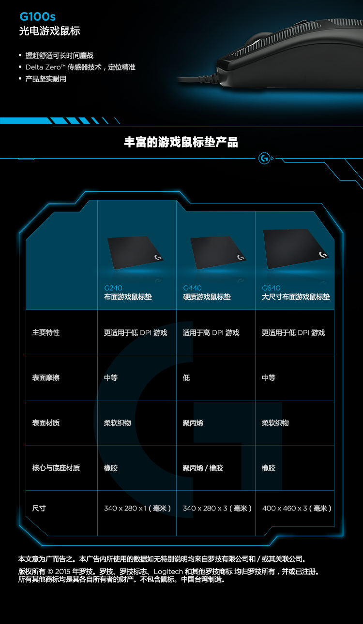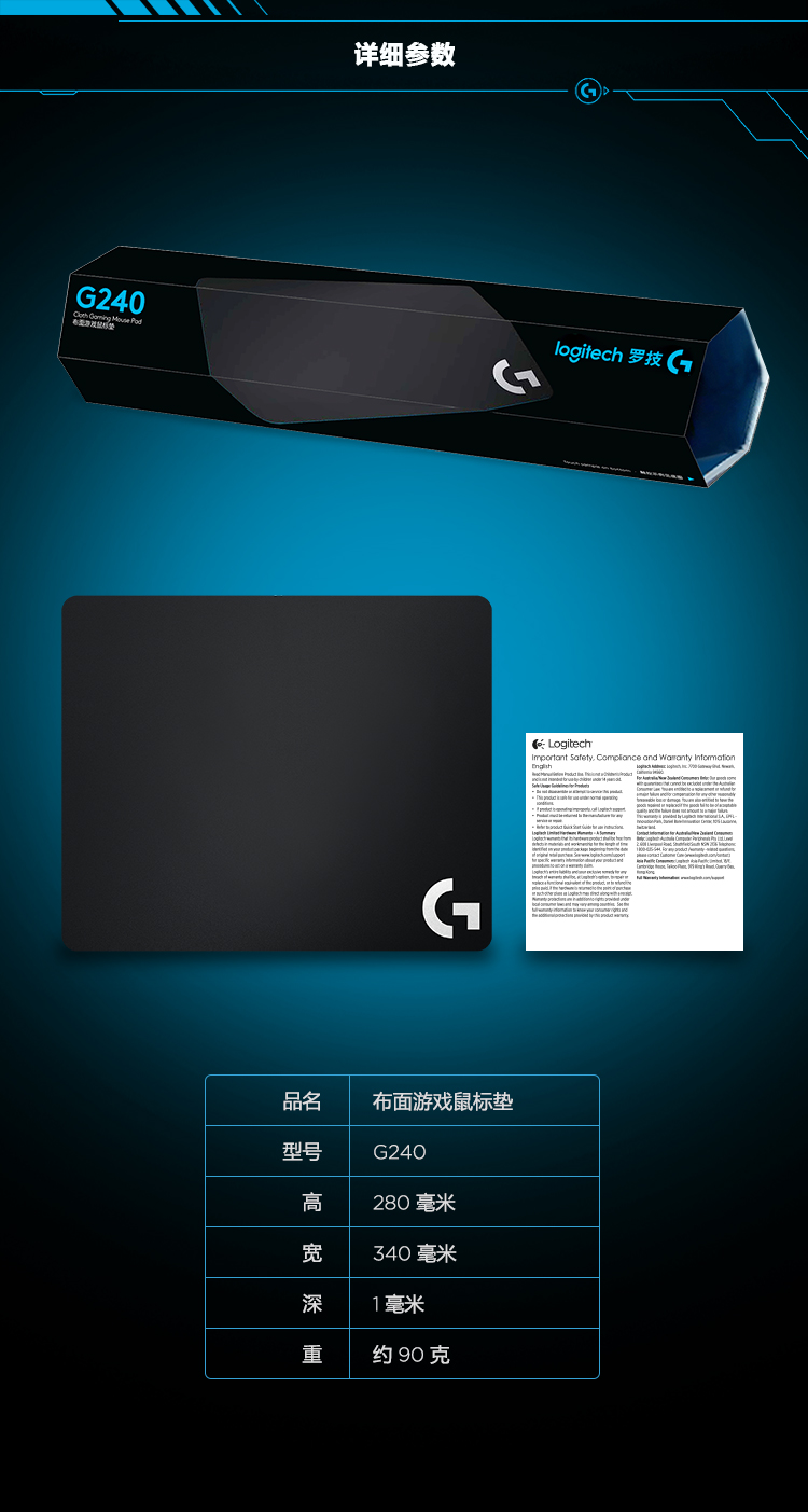 - 商品名称:罗技(G) G240 布面游戏鼠标垫
