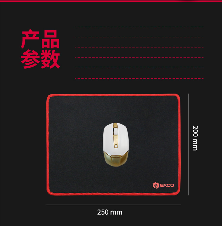 商品名称:宜适酷(EXCO)橡胶鼠标垫 包边 大号 办公用品锁边游戏垫MSP035黑