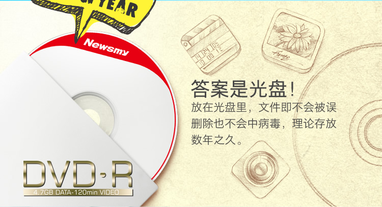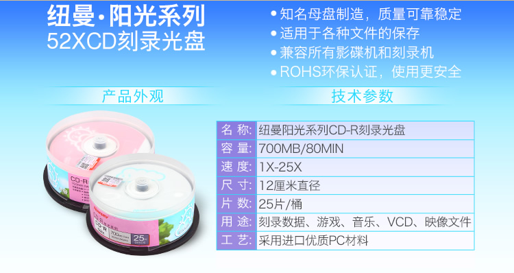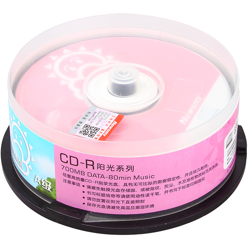 名称:纽曼(Newsmy)CD-R 52速 700M阳光桶装光盘25片 刻录盘(云阳两种图案随机发售)-新老包装随机发货