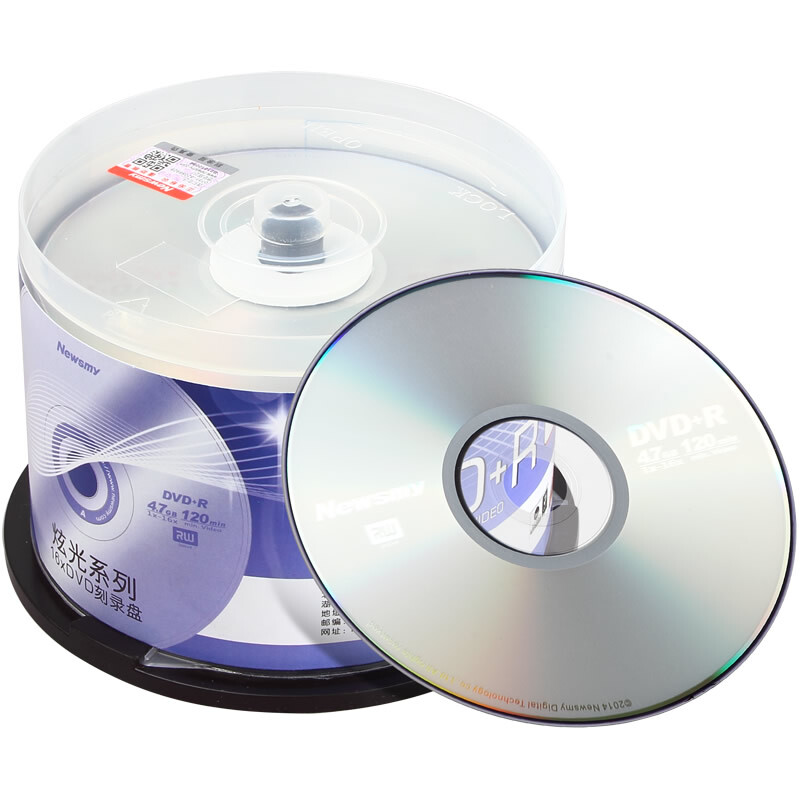 名称:纽曼(Newsmy)DVD+R光盘/刻录盘 炫光系列 16速4.7G 桶装50片