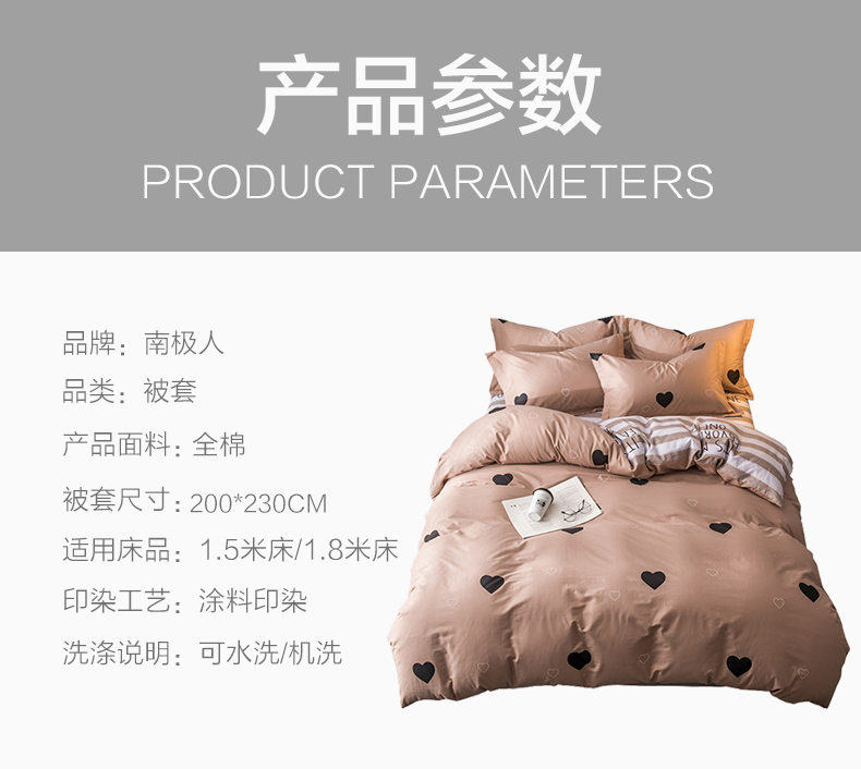 商品名称:南极人NanJiren 纯棉被套单件斜纹印花被罩单件全棉被套单件 200*230cm 1.5/1.8米纯棉被罩单件