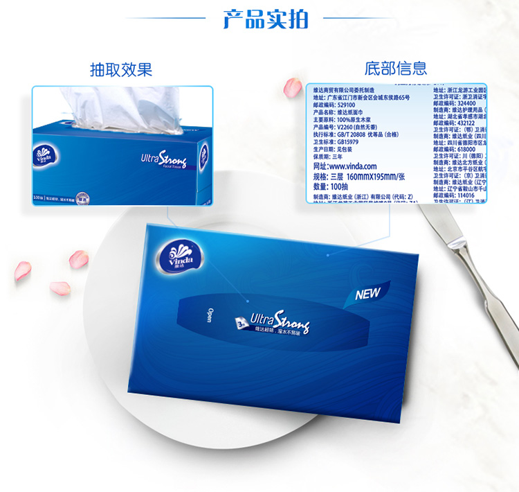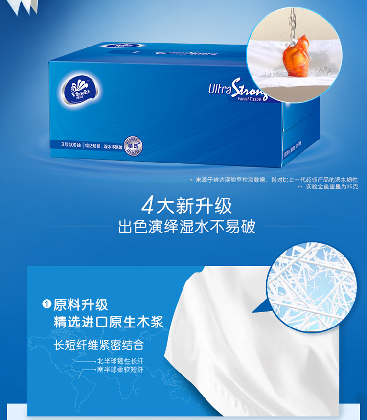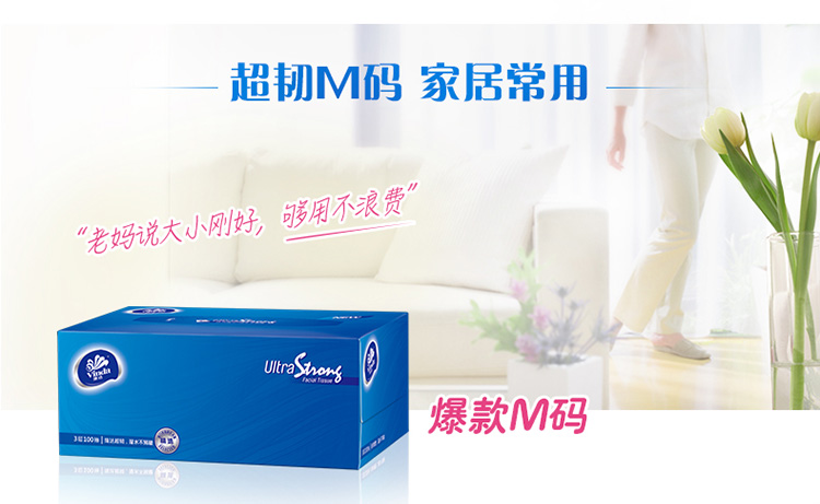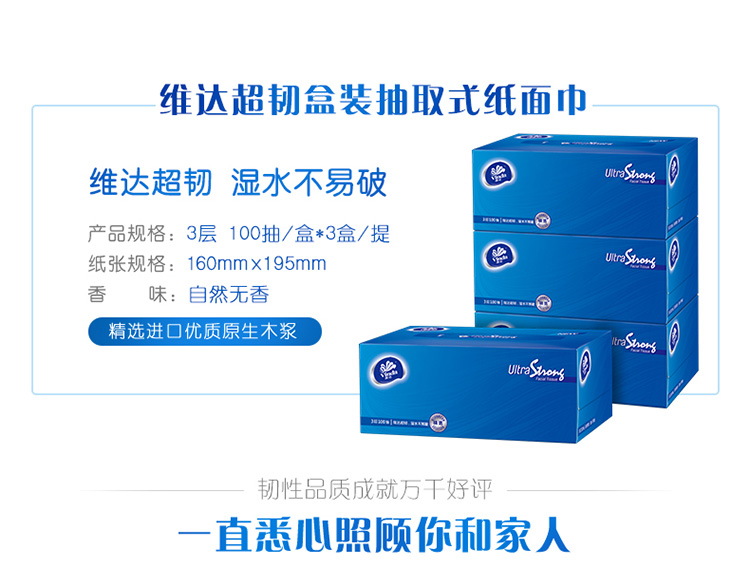 - 商品名称:维达(Vinda) 抽纸 超韧3层100抽盒装*3盒纸巾(中规格)
