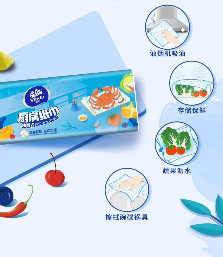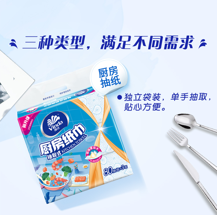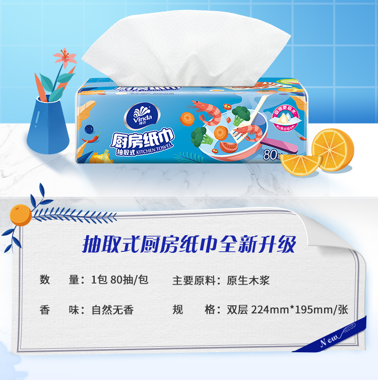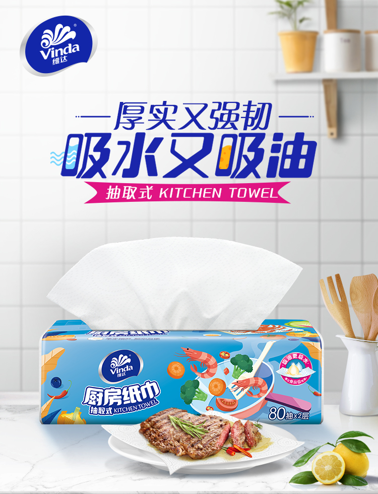 - 商品名称:维达(Vinda) 抽纸 厨房用纸 抽取式80抽*单包