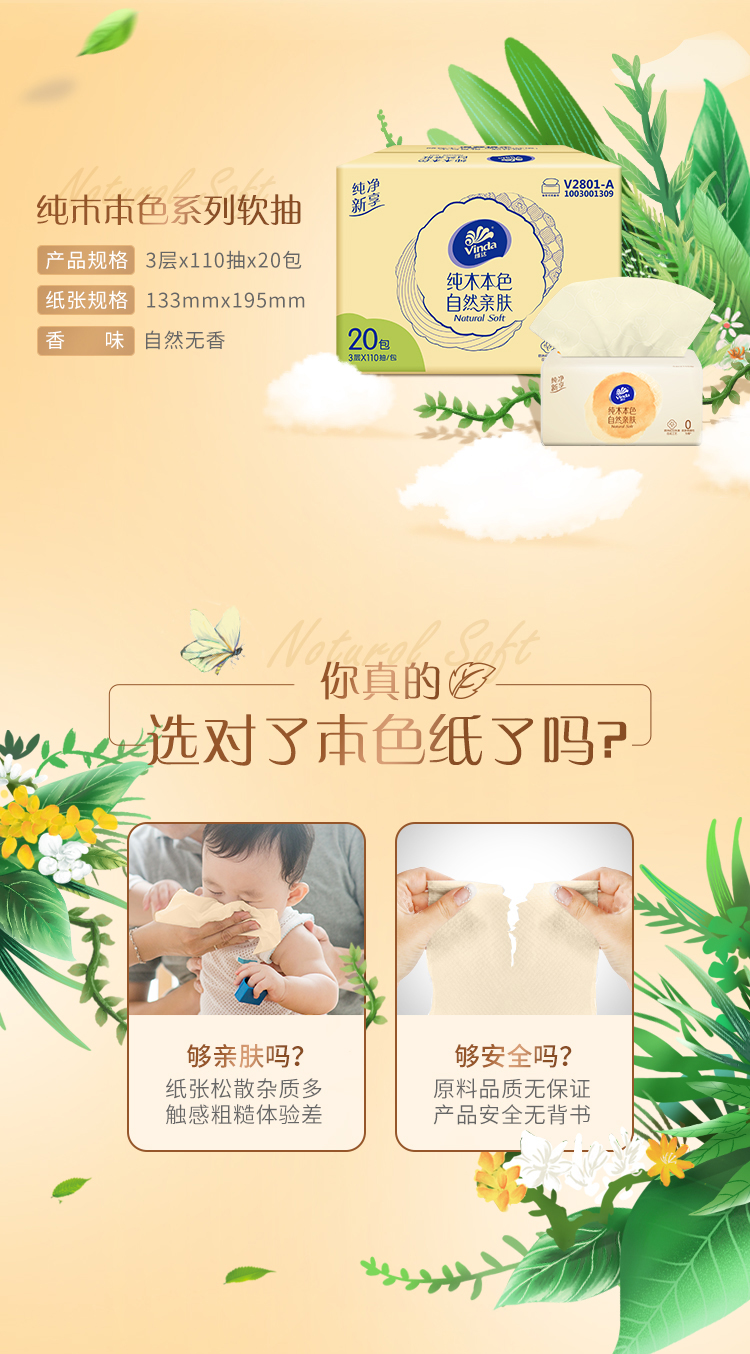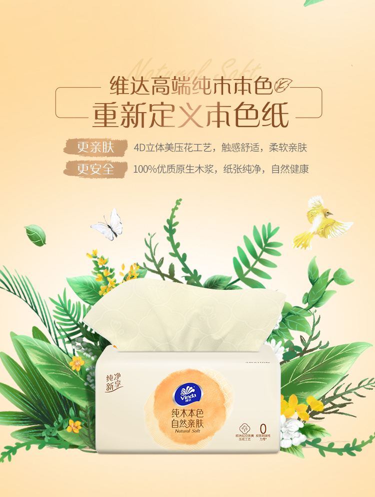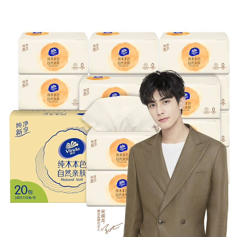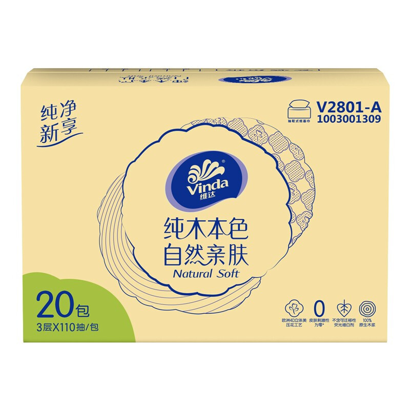 - 商品名称:维达(Vinda) 抽纸 纯木本色110抽330张抽取式纸面巾*20包 S码(整箱销售)母婴可用 100%原生木浆