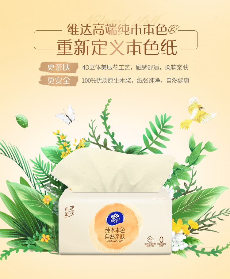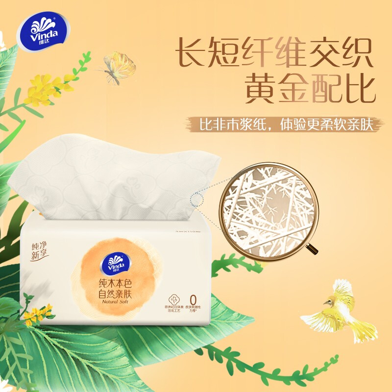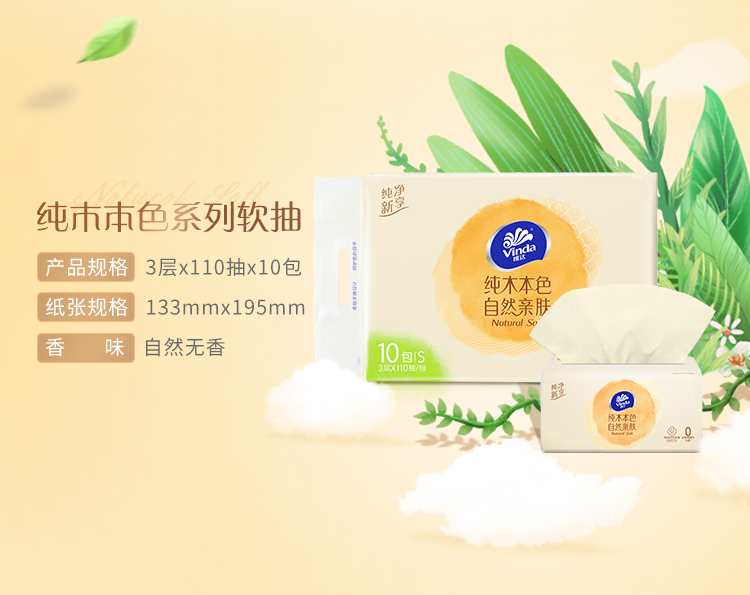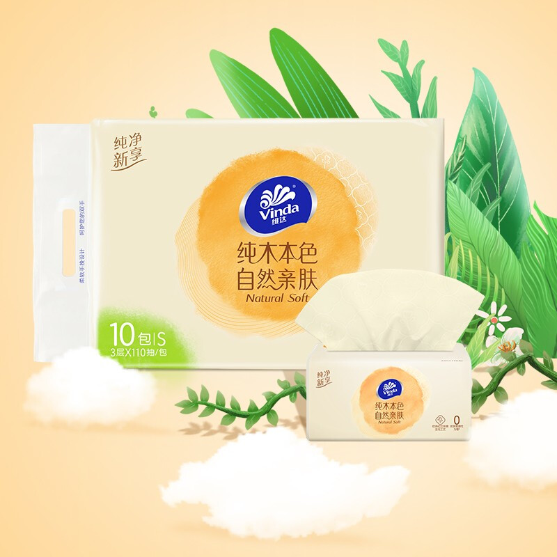 商品名称:维达(Vinda) 抽纸 纯木本色110抽(330张)*10包 抽取式纸面巾 S码母婴可用