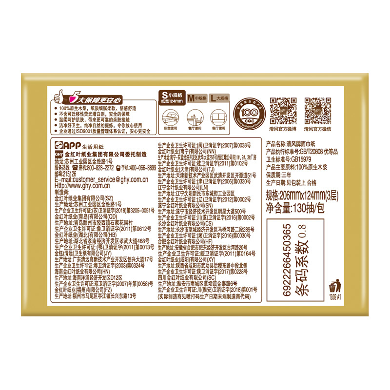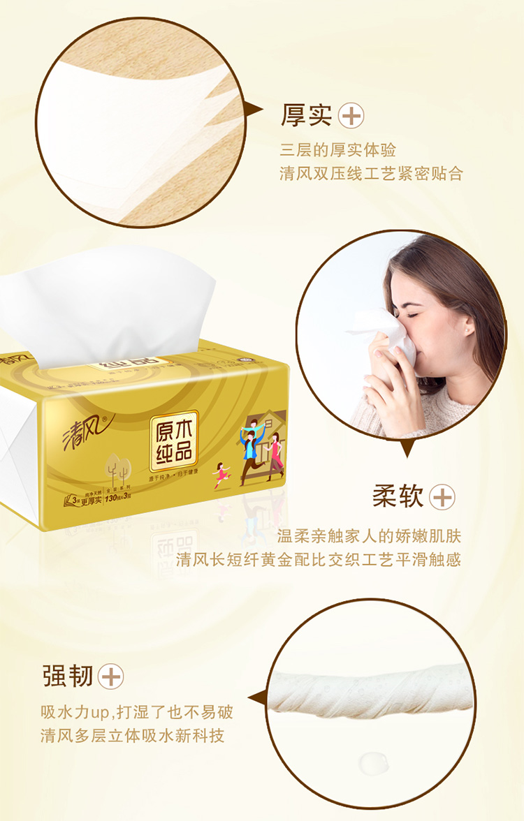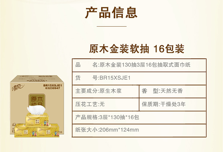 - 商品名称:清风(APP)抽纸 原木纯品金装系列 3层130抽软抽纸巾*16包(母婴可用 整箱销售 新老包装交替发货)