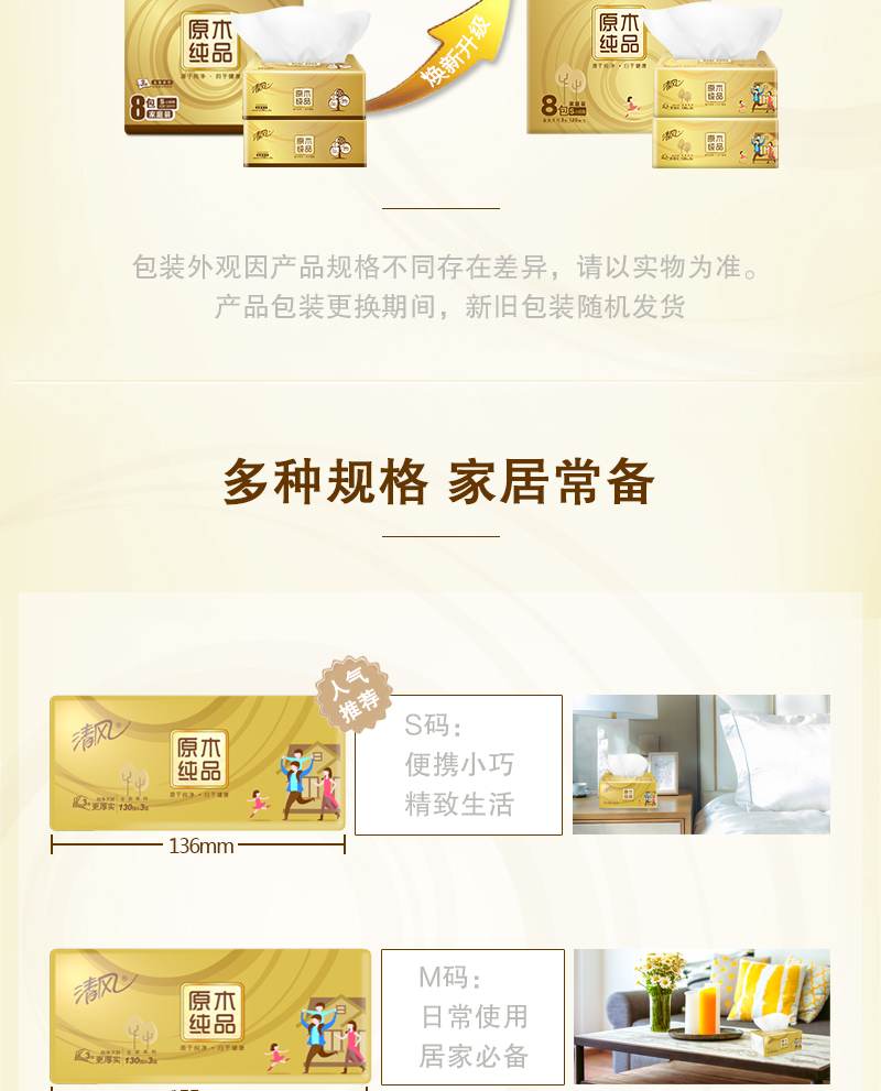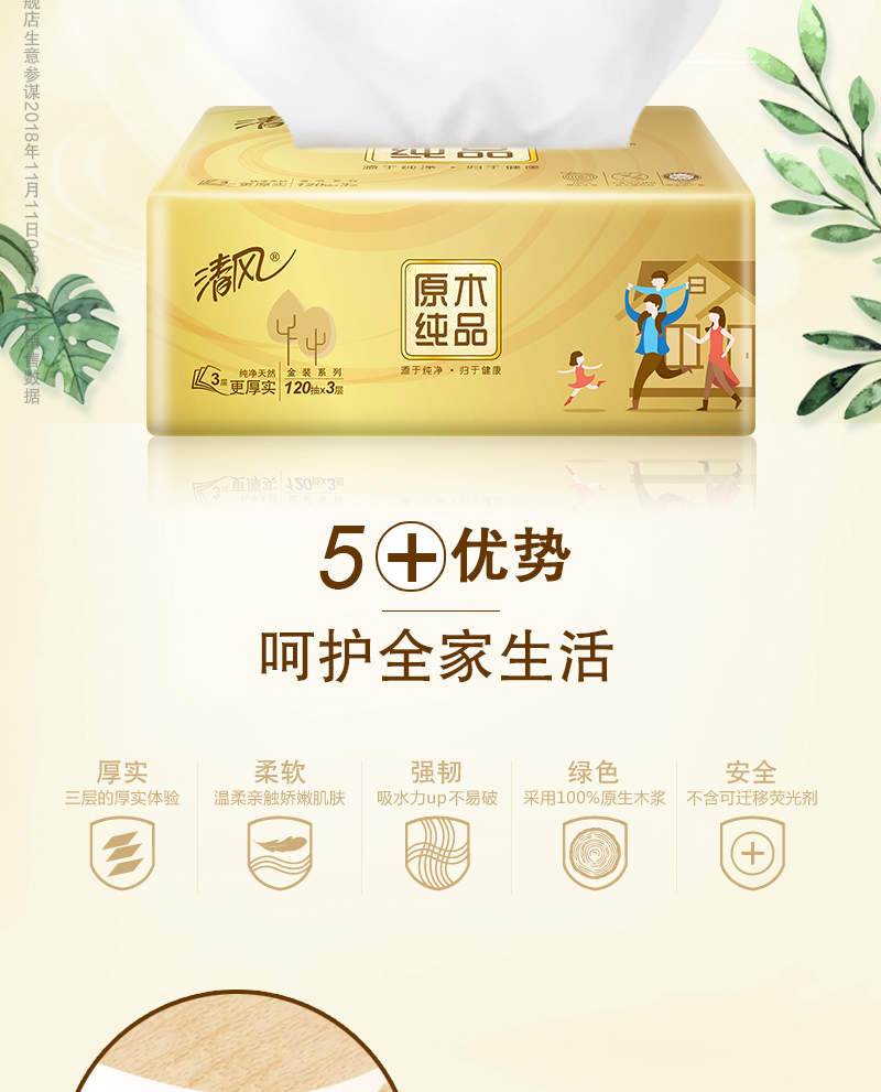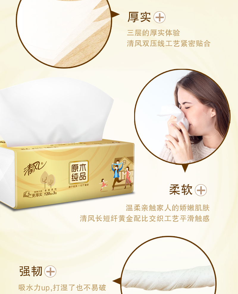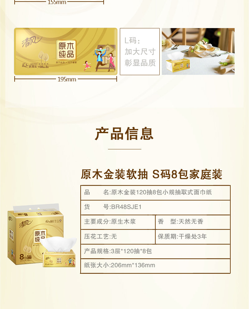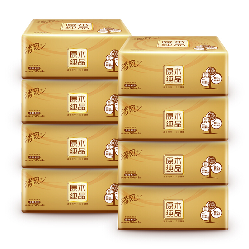 - 商品名称:清风(APP)抽纸 原木纯品金装系列 3层120抽软抽纸巾*8包(新老包装交替发货)