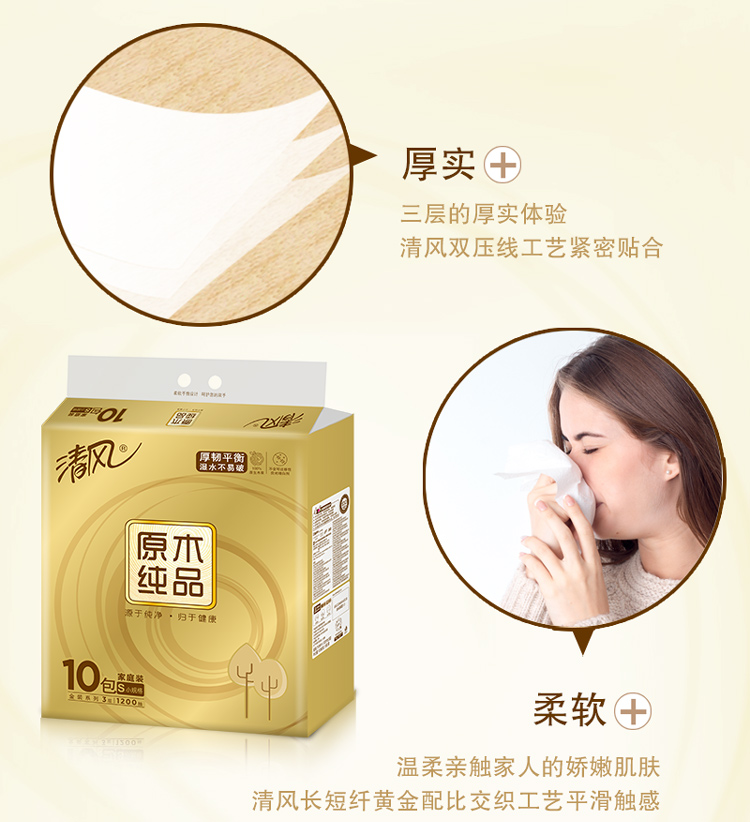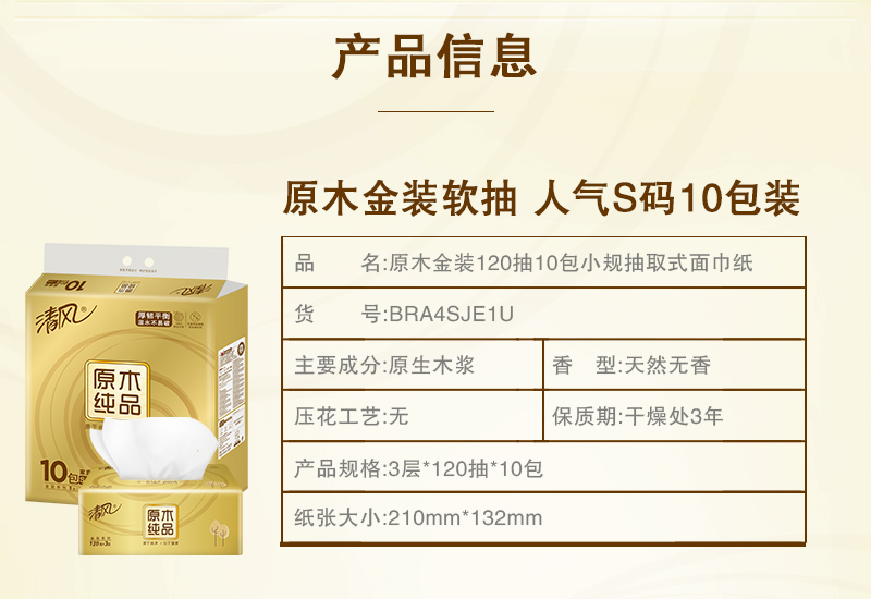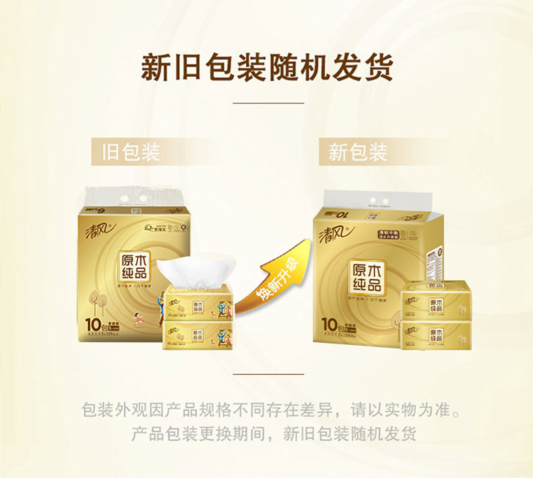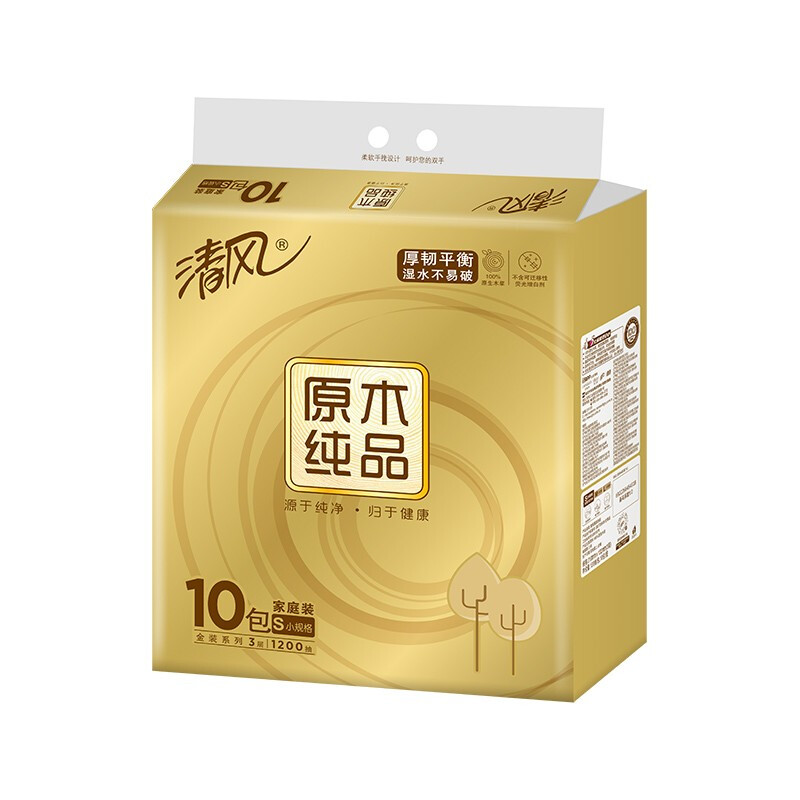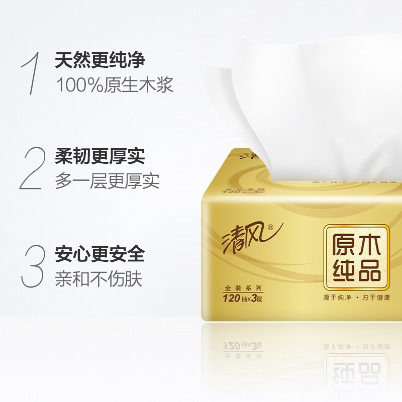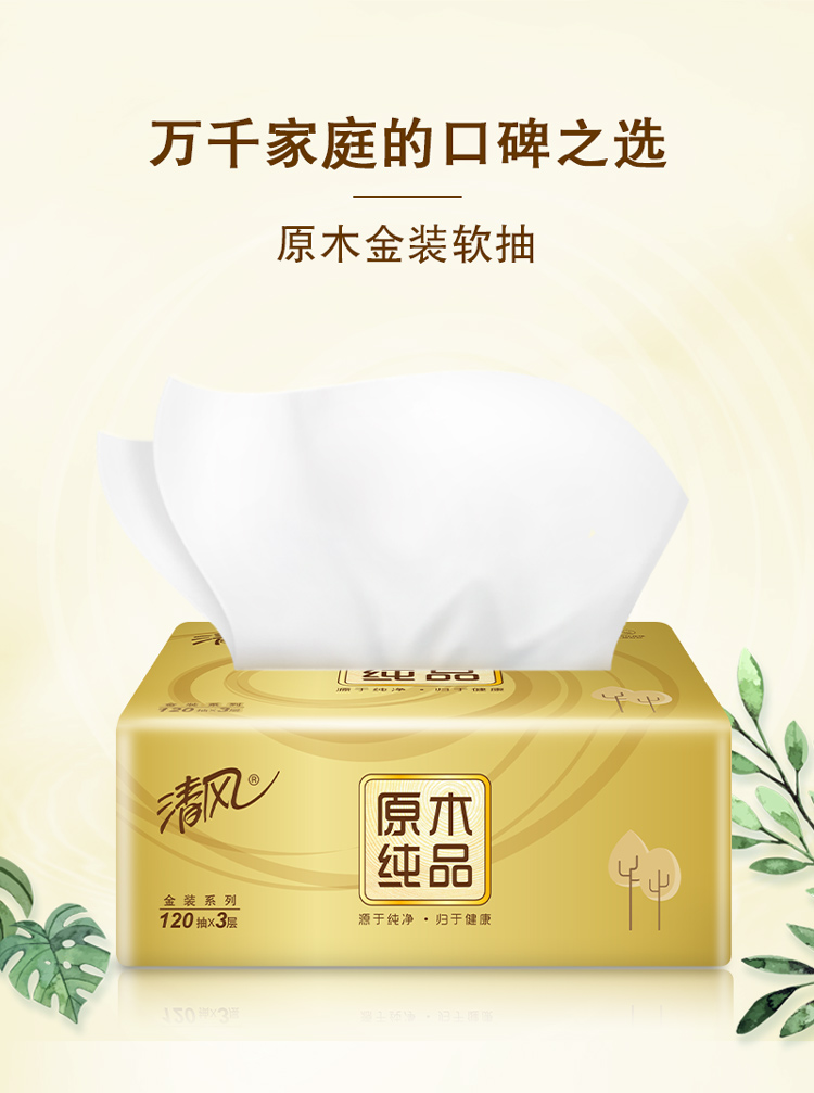 - 商品名称:清风(APP)抽纸 原木纯品金装系列 3层120抽软抽纸巾*10包(母婴可用 柔软厚实)(新老包装交替发货)