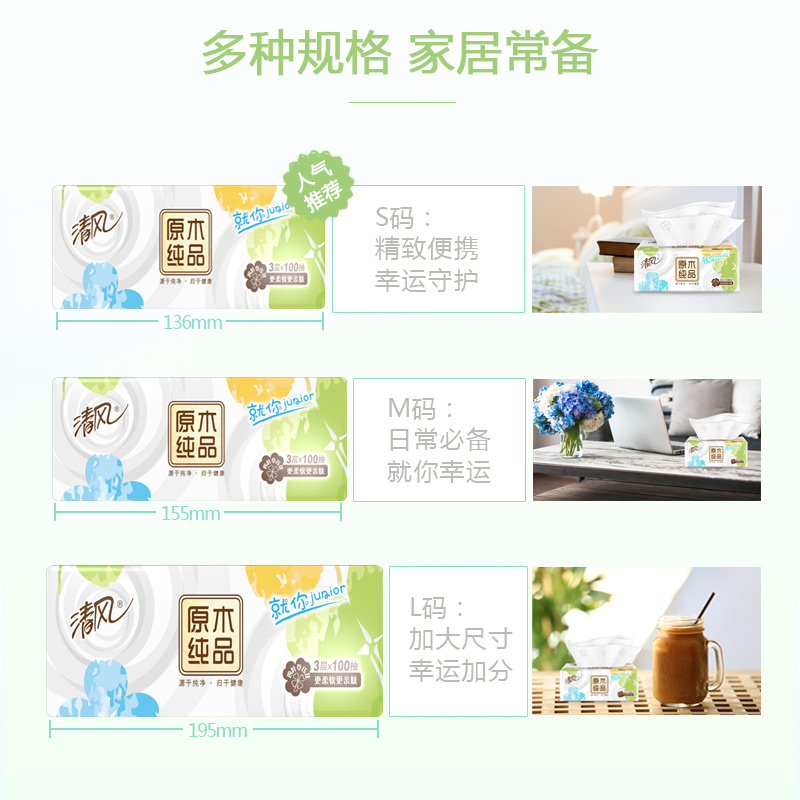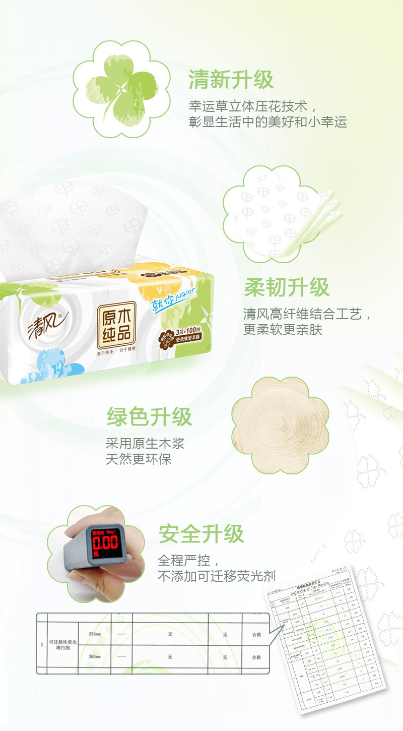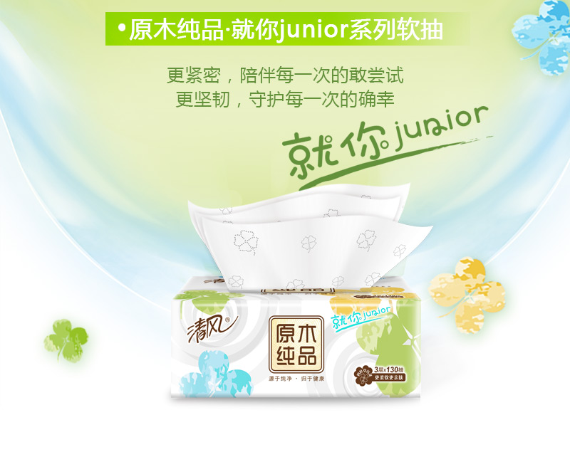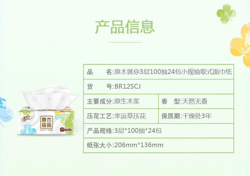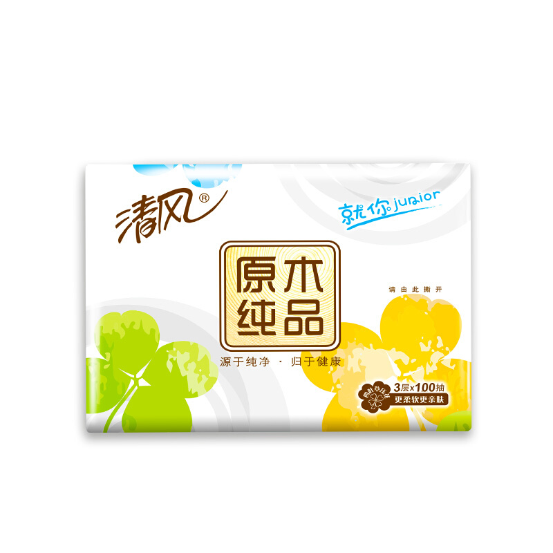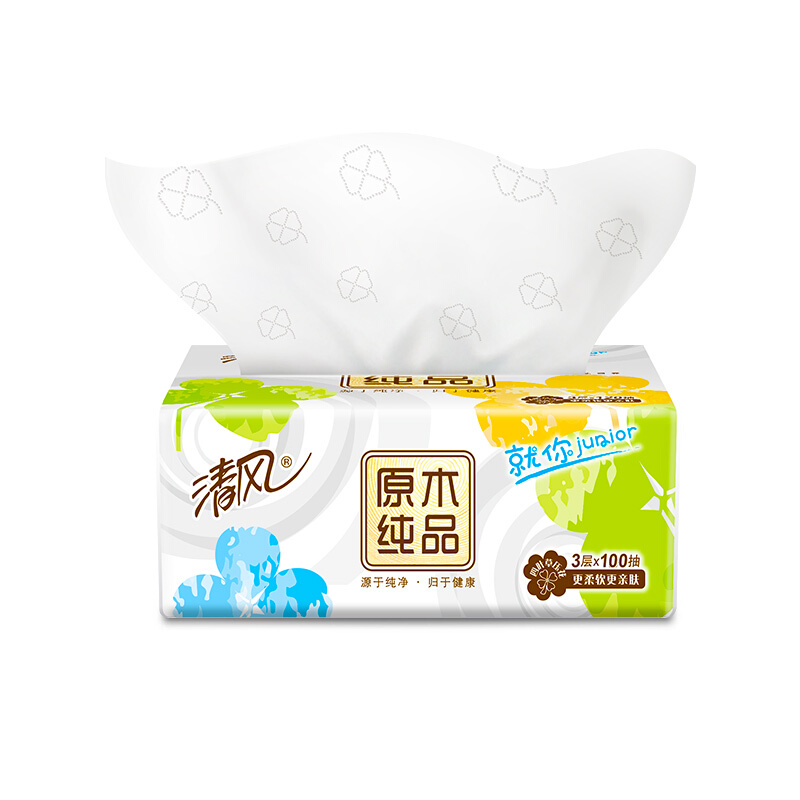 - 商品名称:清风(APP) 抽纸 原木Junior就你四叶草 3层100抽*24包软抽面巾纸巾小规(整箱销售)