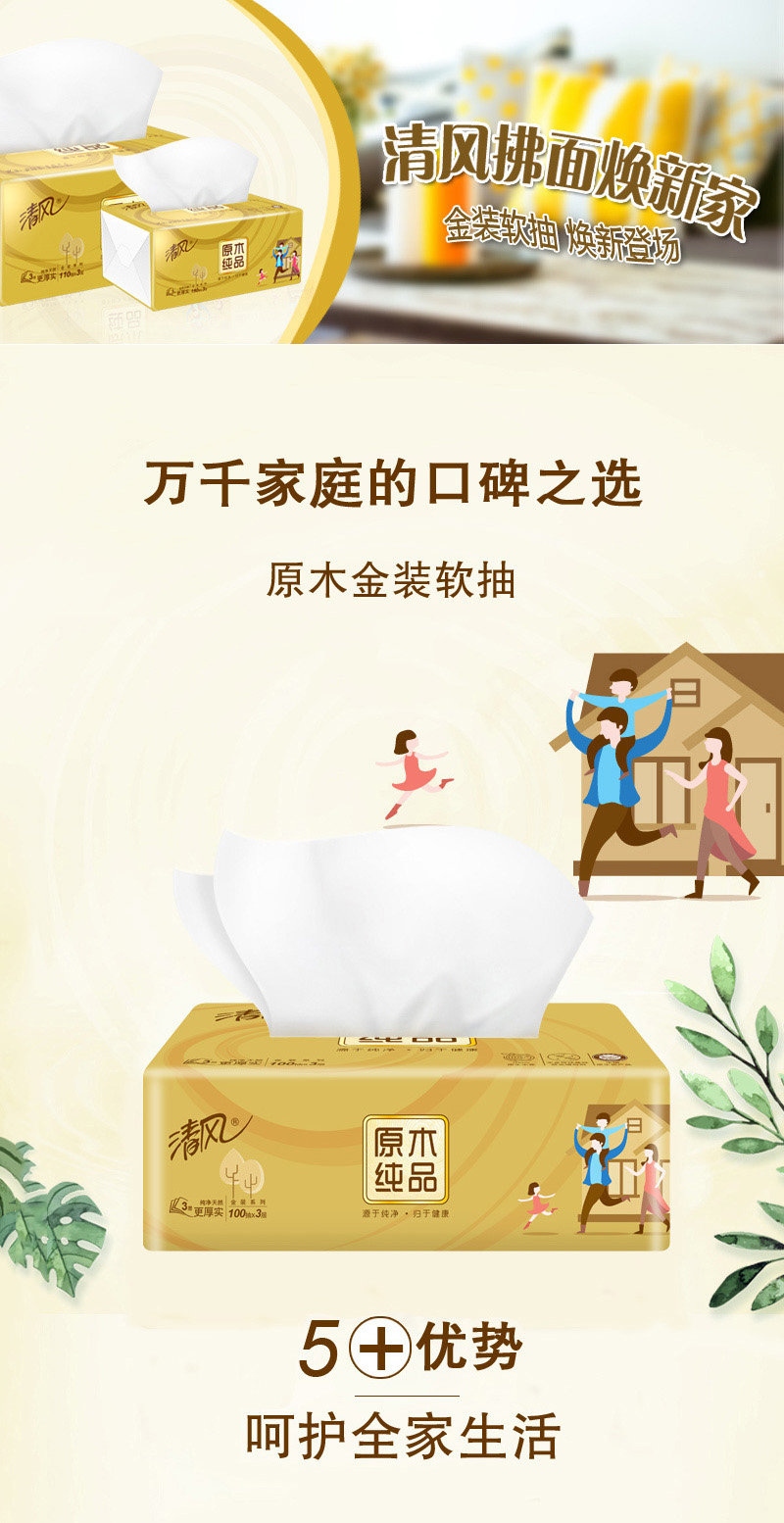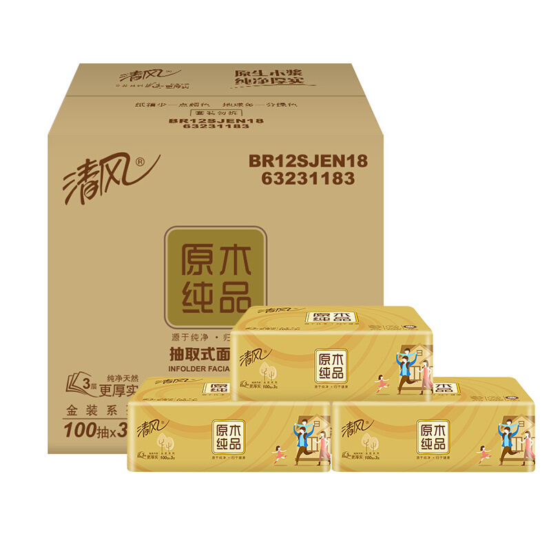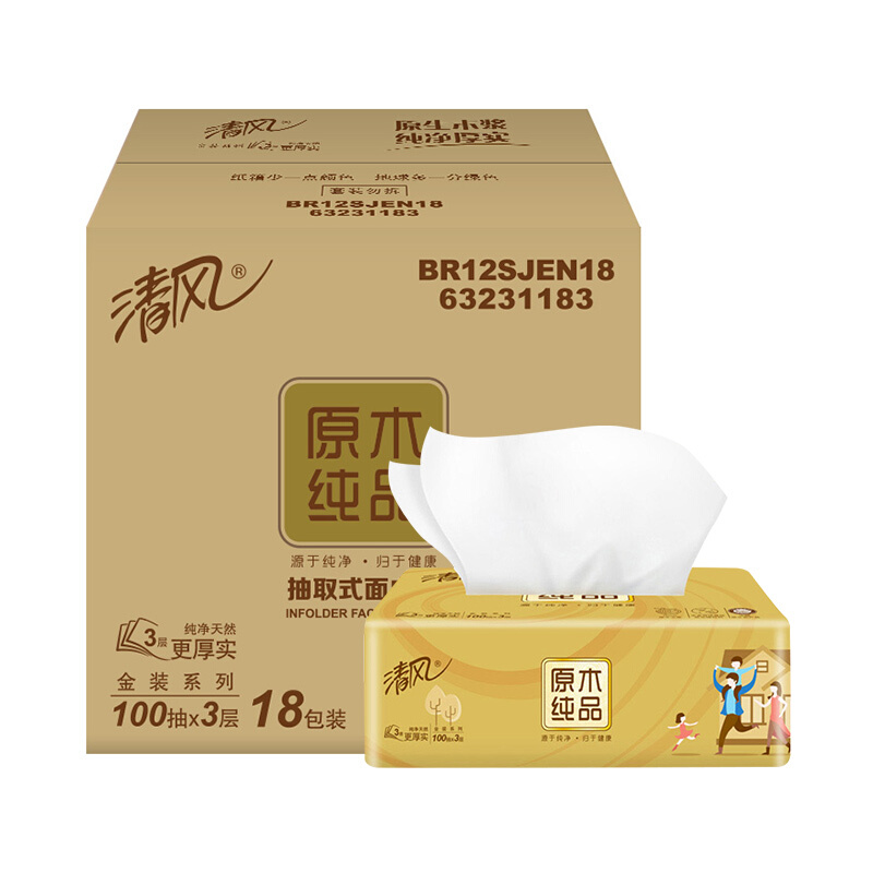 - 商品名称:清风(APP)抽纸 原木金装纸巾 3层100抽18包(整箱销售)