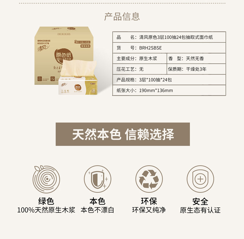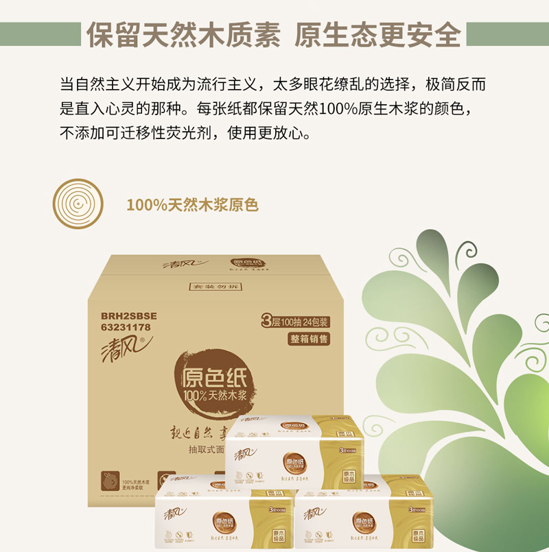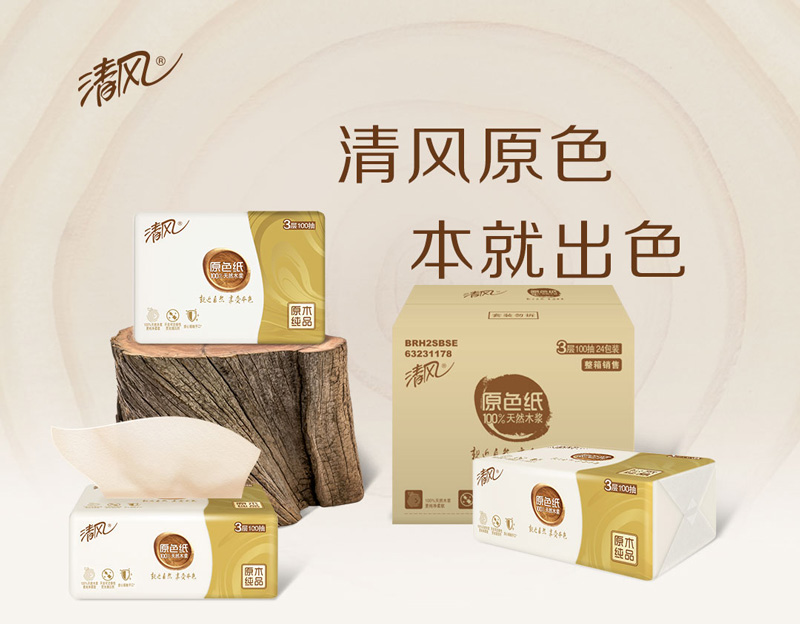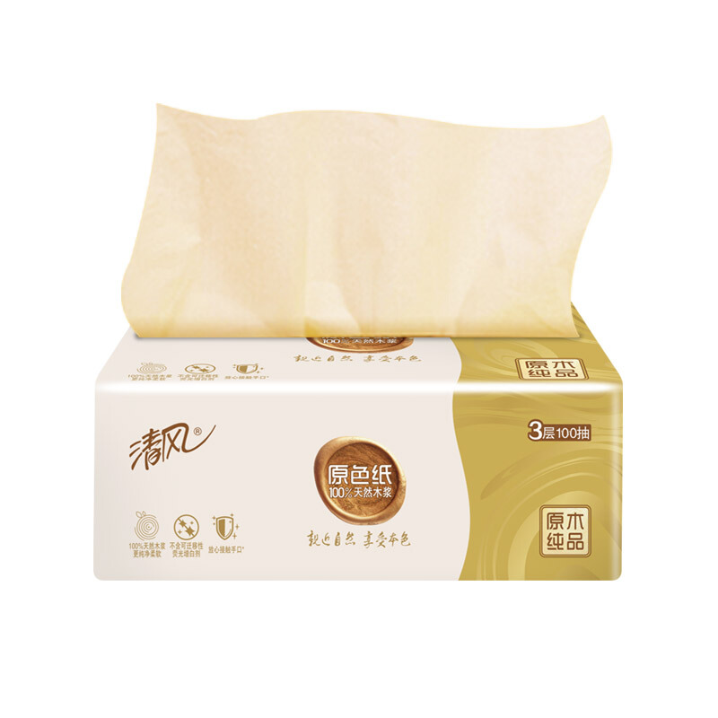 - 商品名称:清风 抽纸 原色抽纸 本色纸巾3层100抽24包(整箱销售)