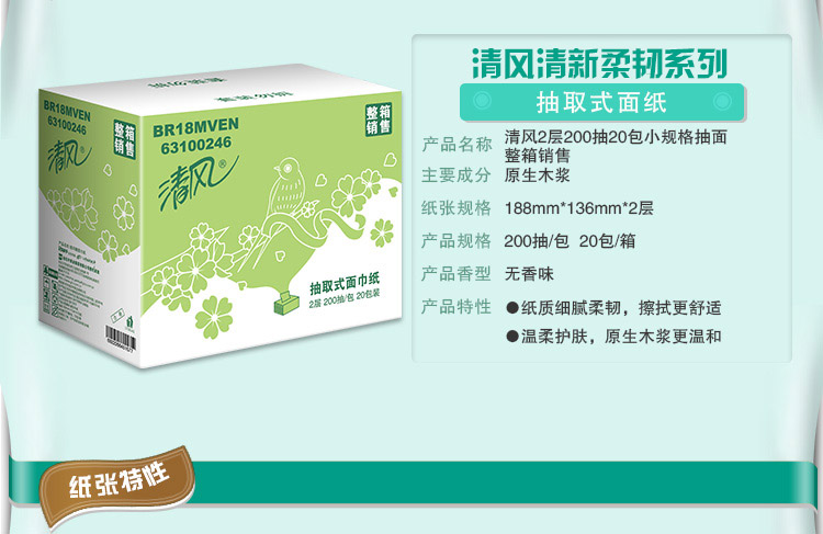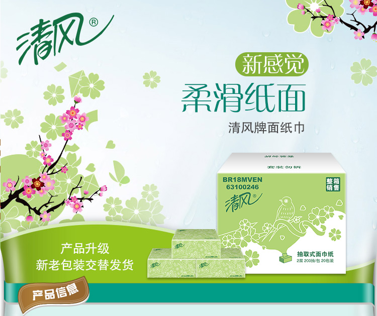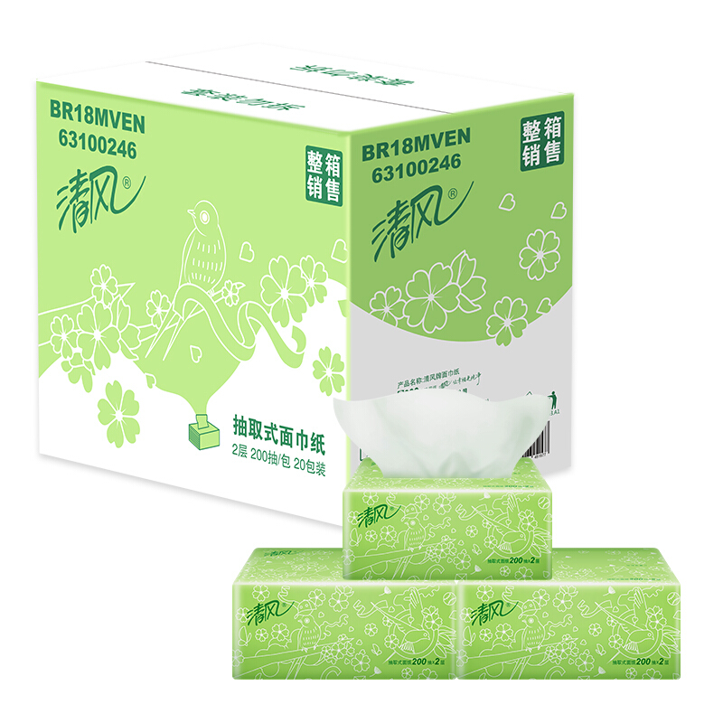 - 商品名称:清风(APP)抽纸 柔韧2层200抽软抽*20包纸巾(新老包装交替发货)(整箱售卖)
